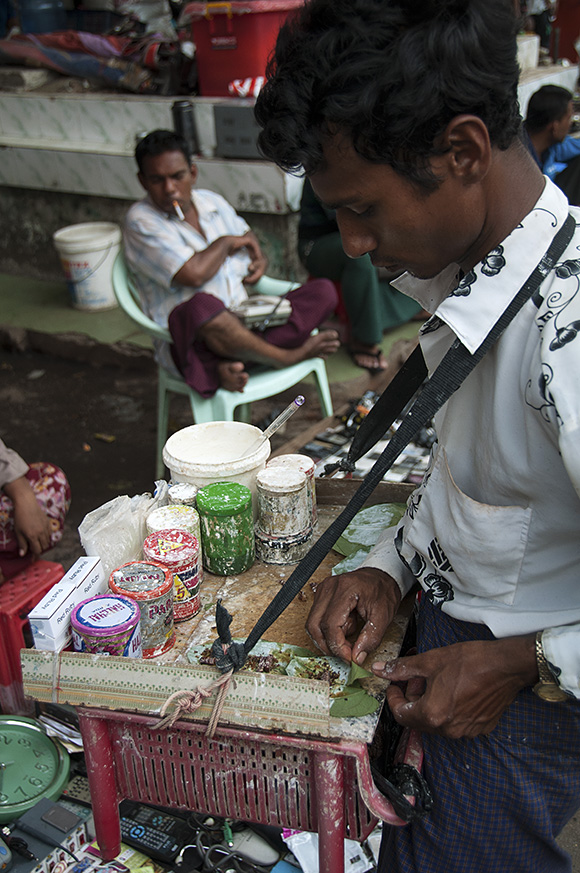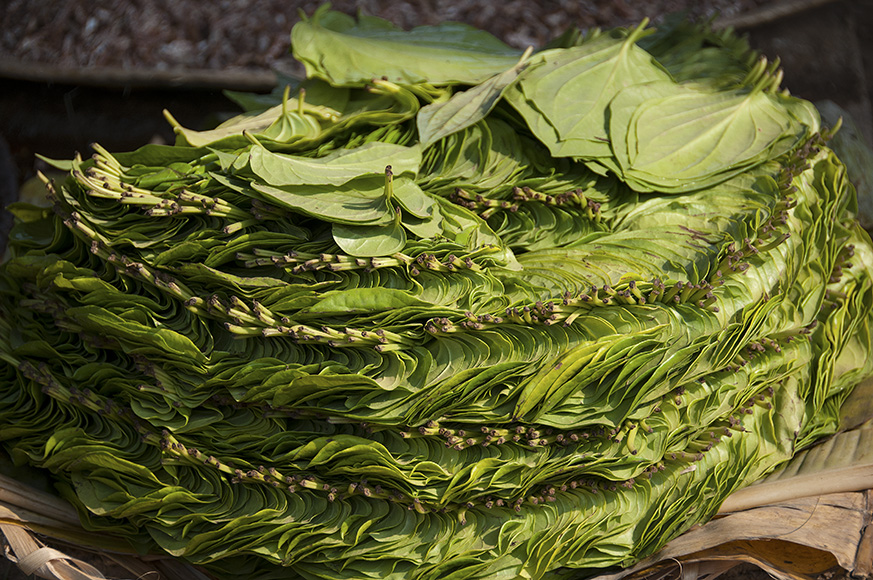A jak jest w krajach azjatyckich? Tutaj króluje betel. Używka ta jest bardzo popularna w Indiach i krajach Azji Południowo-Wschodniej. Wyglądem przypomina bluszcz. Liście betelu żuje się z nasionami areka (rodzaju palmy) oraz z mlekiem wapiennym, co ułatwia przedostanie się substancji stymulujących do krwioobiegu. Poza działaniem pobudzającym betel orzeźwia oraz ma właściwości lecznicze (likwiduje pasożyty i odkaża przewód pokarmowy). Brunatno-czerwone plamy na ulicach azjatyckich miast to ślady pozostawione przez żujących liście betelu. Roślina ta bowiem barwi ślinę i język na czerwono, zęby natomiast pod jej wpływem stają się czarne.