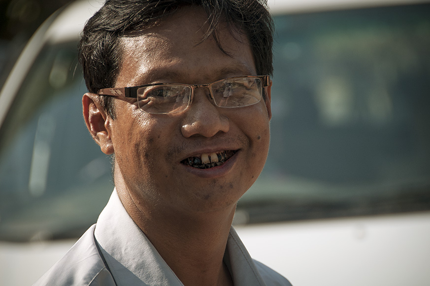 zabarwione na czerwono zęby i dziąsła – efekt żucia betelu