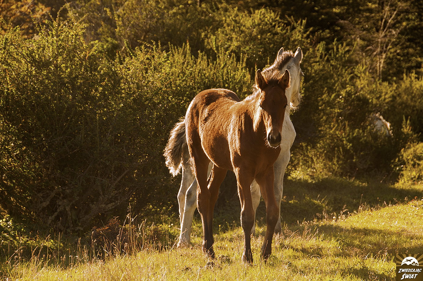 Wracamy. Jeszcze spacer w przeciwną stronę, do pobliskiego wodospadu. Po drodze, kolejny raz, spotykamy stado pasących się swobodnie koni. Sielski widok.