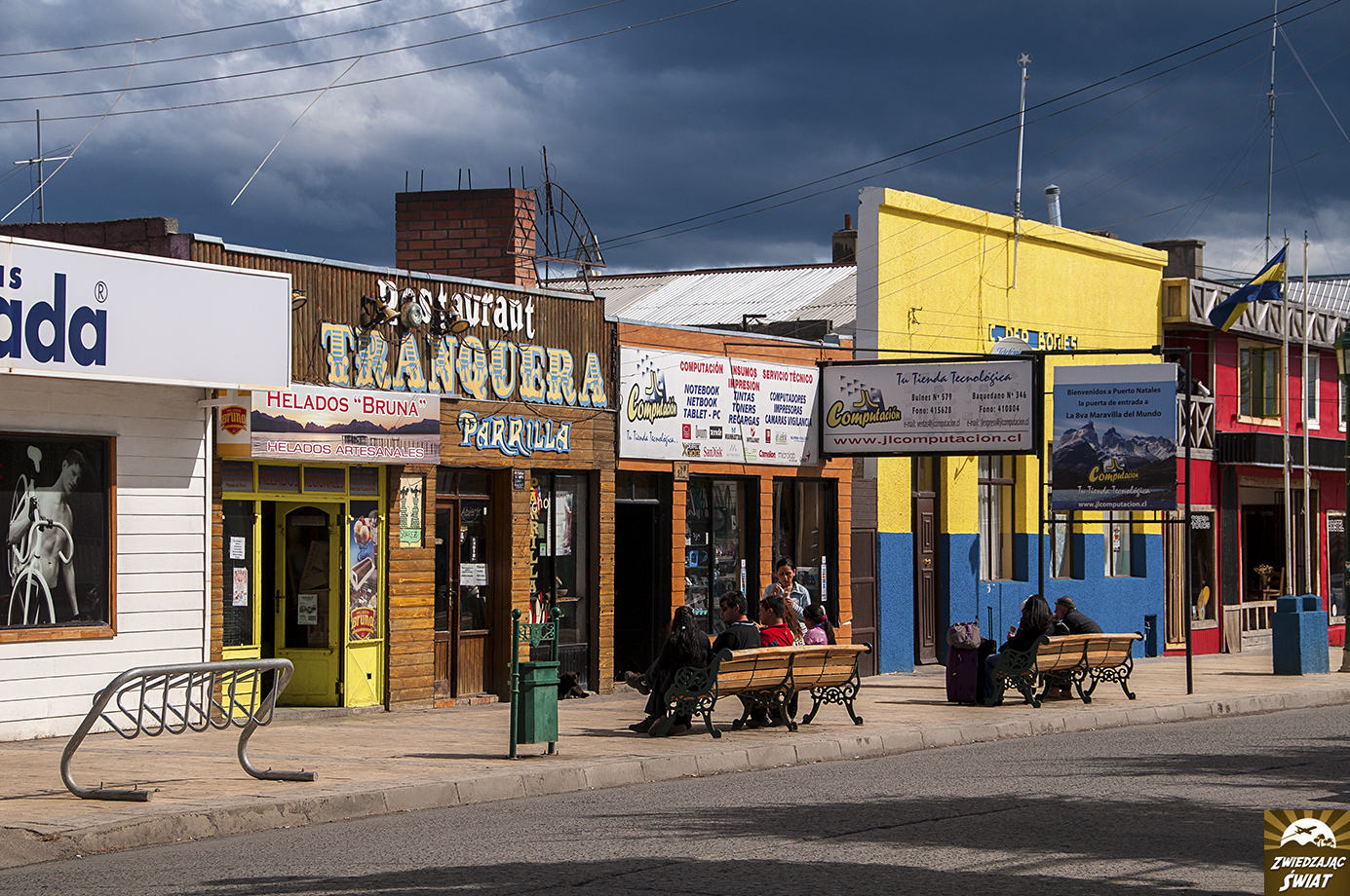 Puerto Natales jest dokładnie takie, jak nasze wyobrażenie o chilijskim miasteczku. Niska, kolorowa zabudowa wzdłuż szerokich, prostopadłych ulic. Pickupy i stare modele aut. Stadka łagodnych, biegających wolno i śpiących na ulicy psów. Niscy, krępi Chilijczycy, odbywający niedzielne spacery z rodzinami. Aż trudno nie zanucić „w Pile było jak w Chile…”.