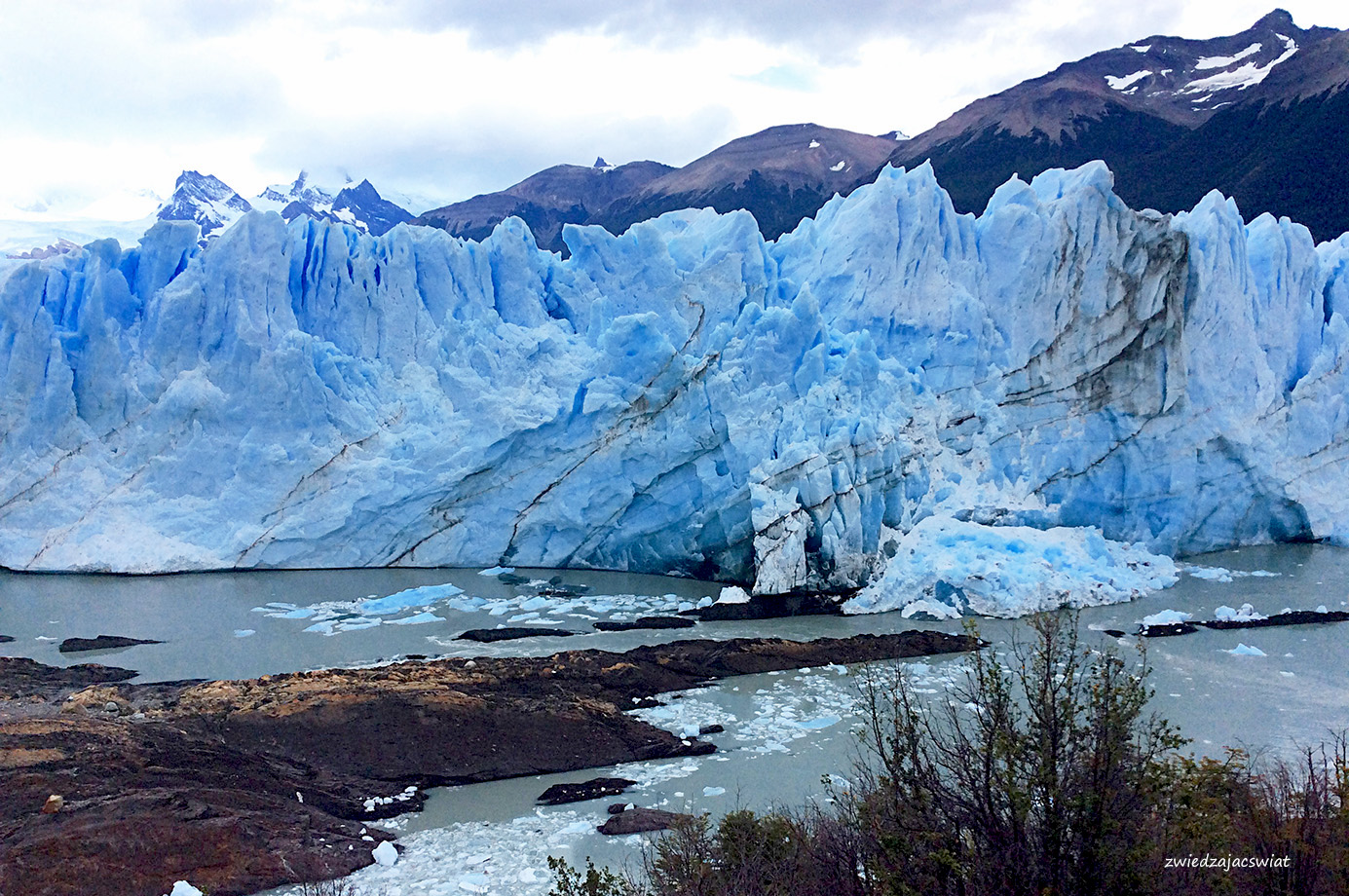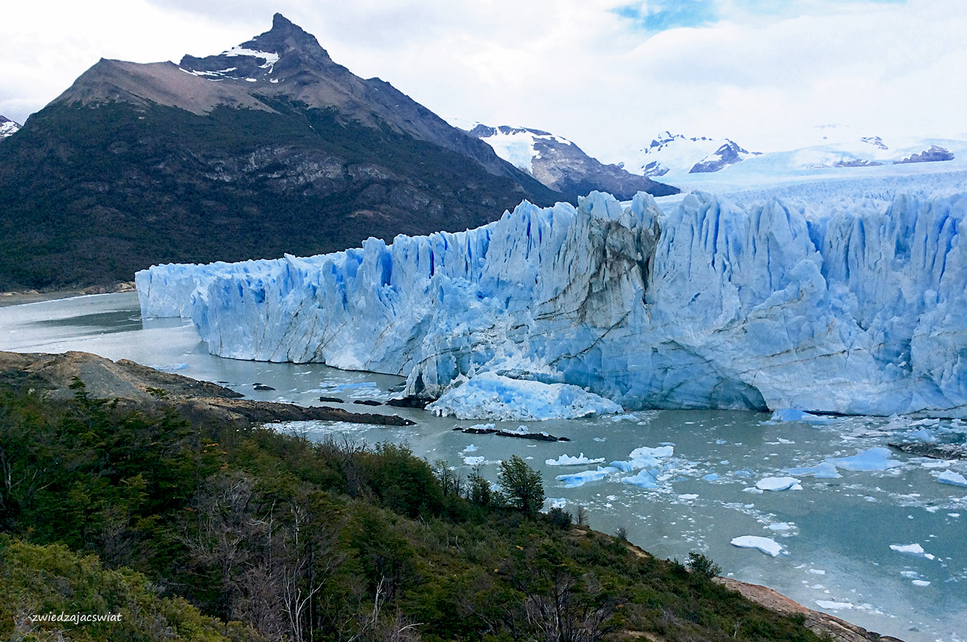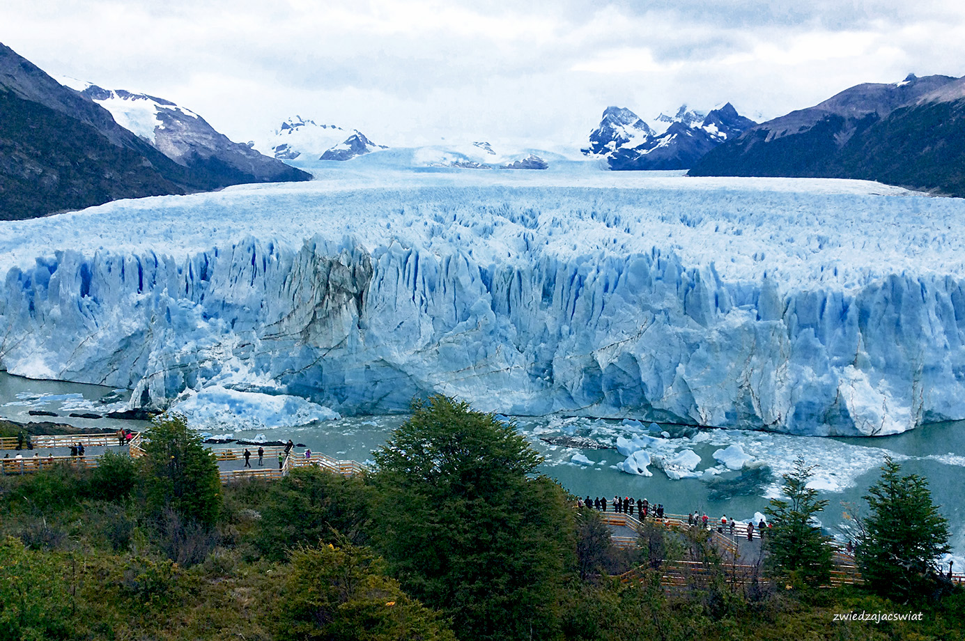 Perito Moreno, lodowiec, który drwi z globalnego ocieplenia i zamiast kurczyć się, wysuwa swój jęzor ku wpatrzonym w niego z brzegów jeziora, przybywającym nieprzerwanie w to miejsce turystom. Z bezpiecznej odległości, dzięki systemowi kładek i widokowych platform, podróżni próbują ogarnąć wzrokiem kolosa o 30 km długości, 5 km szerokości i ścianie wysokości 60 metrów.