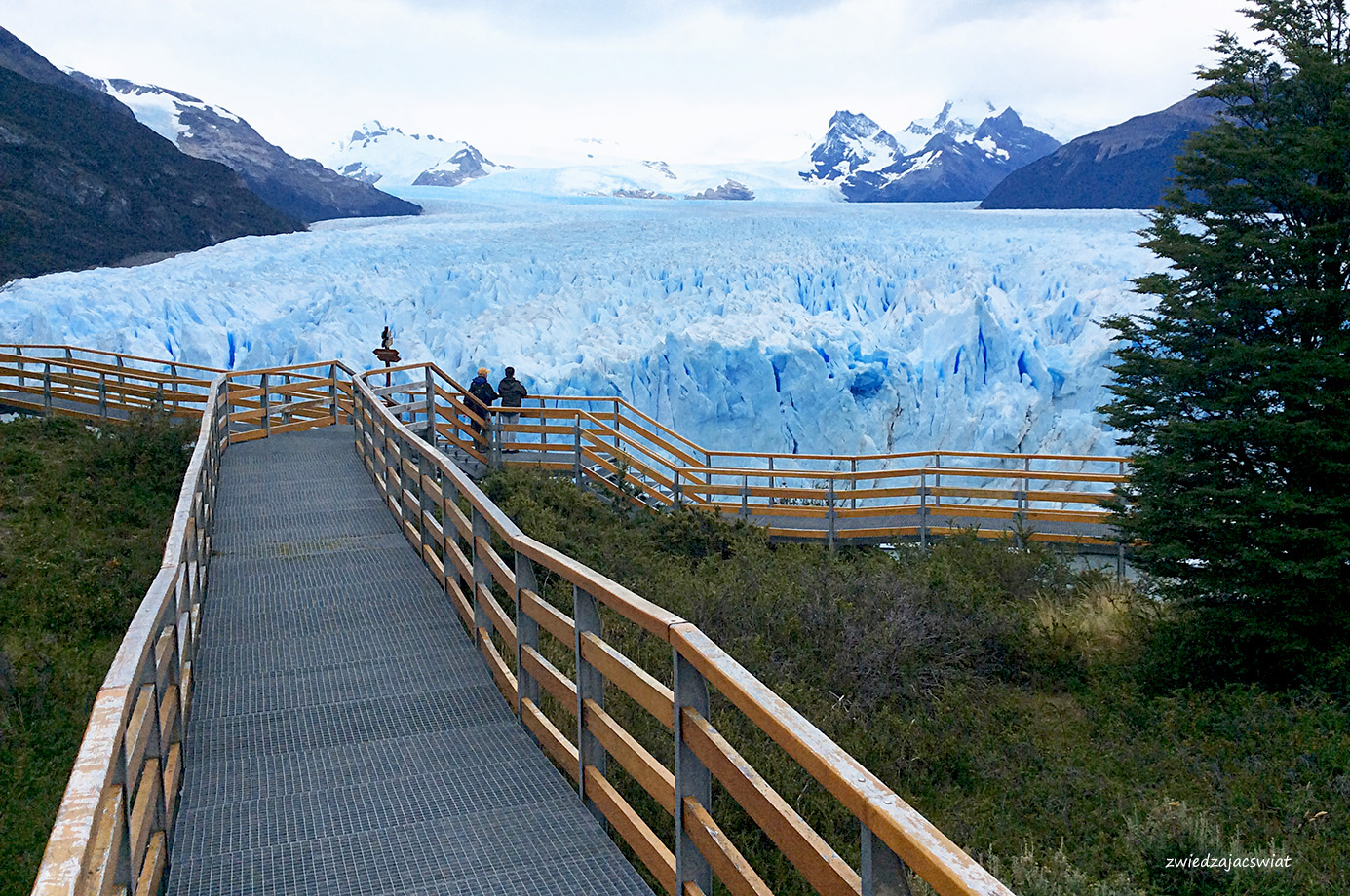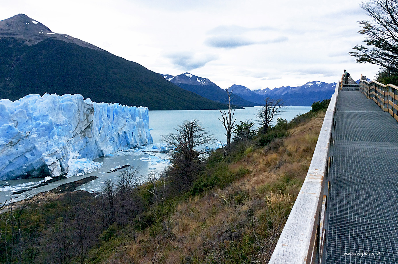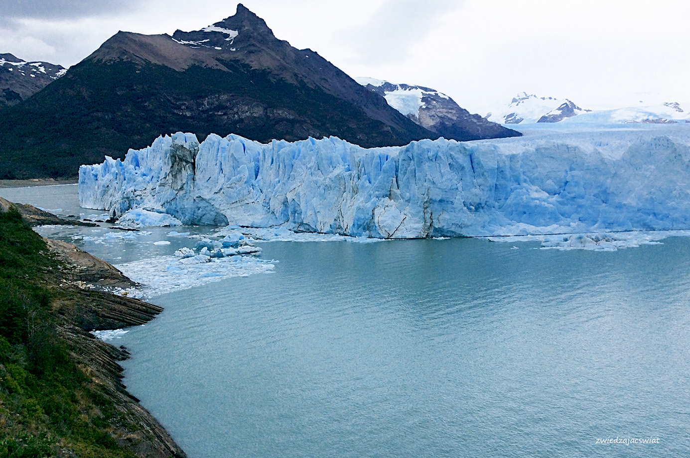 Perito Moreno, lodowiec, który drwi z globalnego ocieplenia i zamiast kurczyć się, wysuwa swój jęzor ku wpatrzonym w niego z brzegów jeziora, przybywającym nieprzerwanie w to miejsce turystom. Z bezpiecznej odległości, dzięki systemowi kładek i widokowych platform, podróżni próbują ogarnąć wzrokiem kolosa o 30 km długości, 5 km szerokości i ścianie wysokości 60 metrów.