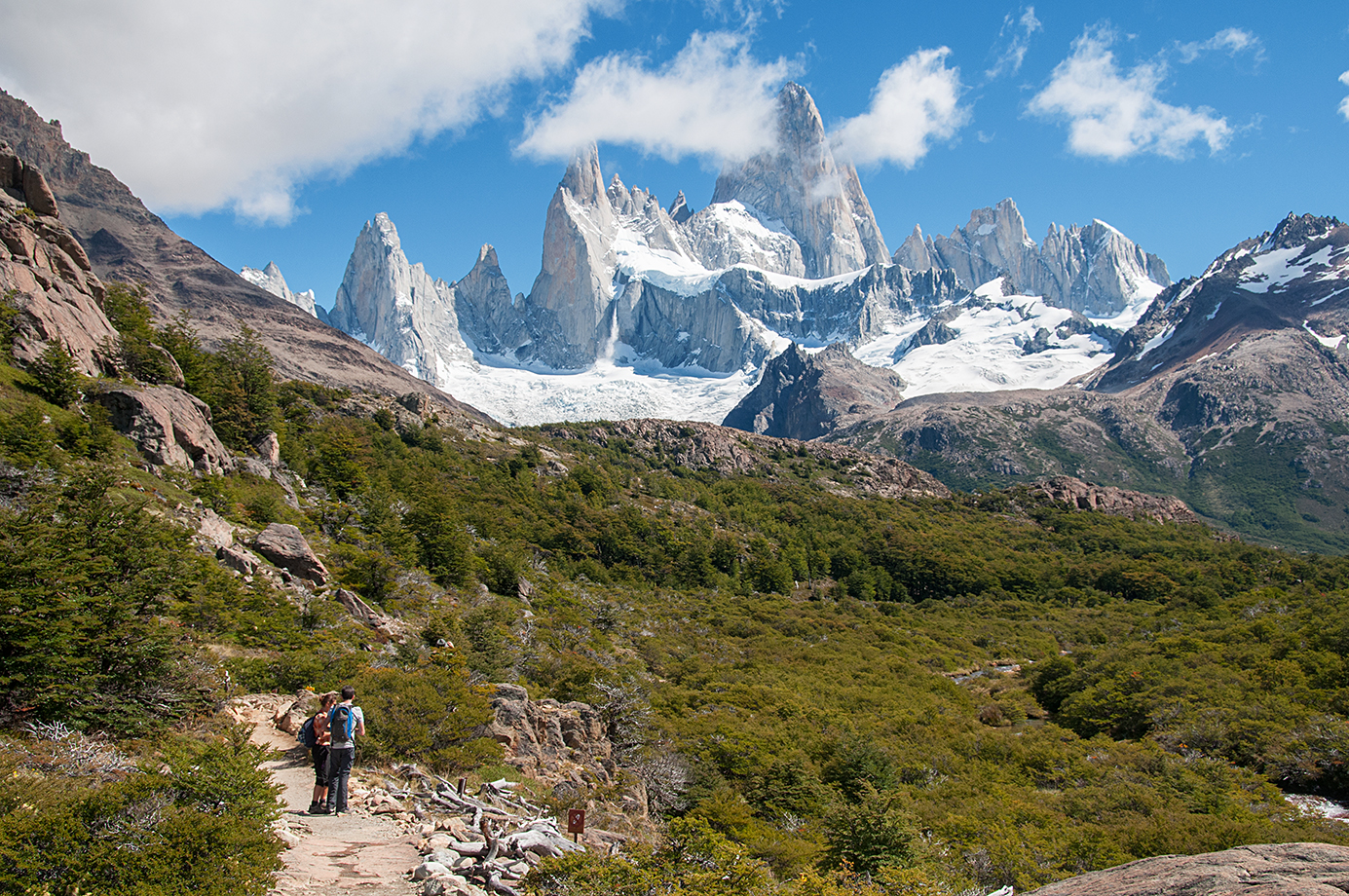 Jeszcze niedawno cieszyliśmy oczy wspaniałym widokiem Trzech Wież w chilijskim Torres del Paine, a już stoimy przed kolejnym cudem natury. Słynny Fitz Roy, co prawda nie płonie w promieniach zachodzącego słońca, ale prezentuje się w całej majestatycznej krasie. To rzadkość. Wierzchołek argentyńskiego szczytu z reguły spowity jest chmurami. Stąd jego nazwa – Dymiąca Góra. Po tak wspaniałej uczcie dla oczu, czas na zasłużoną ucztę dla wygłodniałych żołądków. Wielkie porcje steków lądują na naszych talerzach w jednej z przytulnych knajpek w El Chalten, górskim miasteczku, które dla wędrujących pod Fitz Roya pełni tę samą rolę co Puerto Natales dla ruszających do parku Torres del Paine.