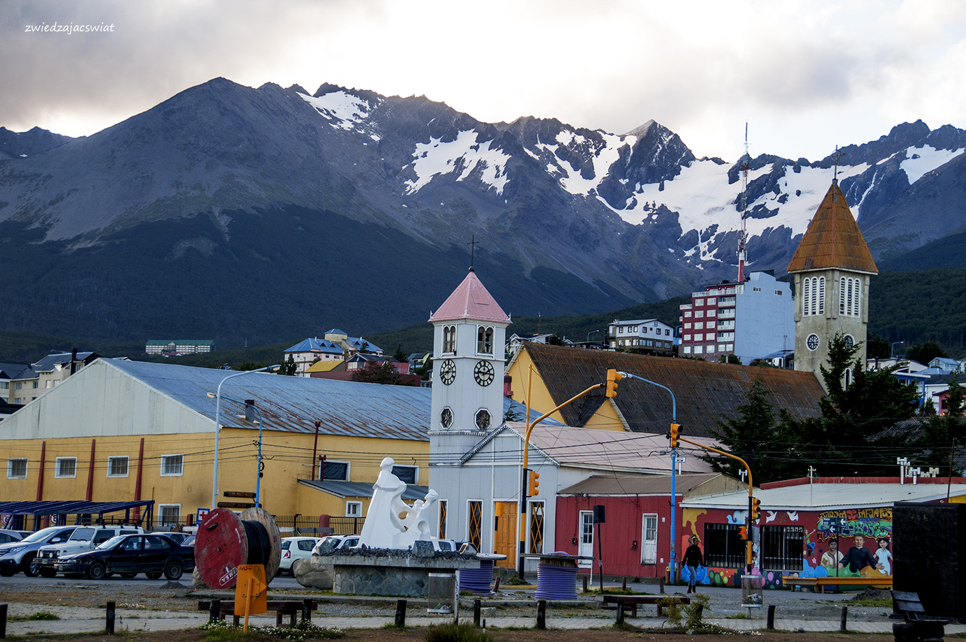 A skoro mowa o rzucaniu na kolana, wróćmy do widoków w Ushuai. Bez dwóch zdań są one imponujące. Wszystko za sprawą niezwykłego położenia miasta, zakotwiczonego u brzegów Cieśniny Beagle’a, z ośnieżonymi szczytami Montes Martial w tle. Niestety piękno położenia, nie idzie w parze z pięknem zabudowy Ushuai. Boom turystyczny, rozpoczęty w latach 80-tych XX wieku, wpłynął na jej chaotyczność. Obok klimatycznych, drewnianych domków, pojawiły się nieciekawe, betonowe bloki. Zanika również atmosfera miasteczka zagubionego gdzieś na Końcu Świata, któremu początek dała kolonia karna, założona u schyłku XIX wieku. Zza sklepowych witryn spoglądają na turystów figurki drewnianych lub kamiennych pingwinów, w restauracyjnych menu rządzą kraby, a przy tablicy z napisem „Ushuaia fin del mundo” panuje ruch jak na wiosnę w Pałacu Ślubów.