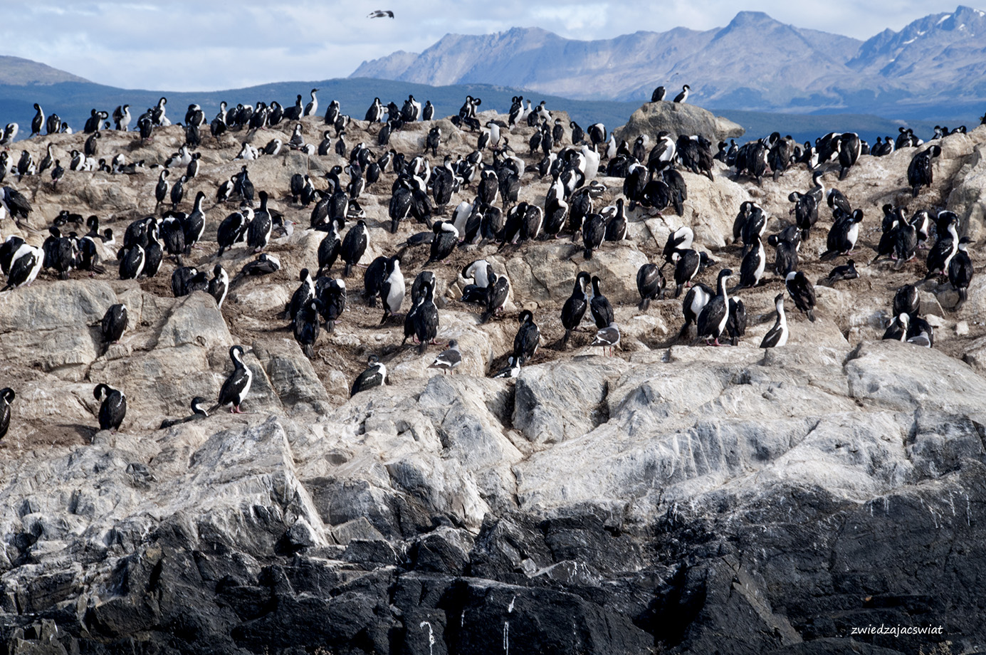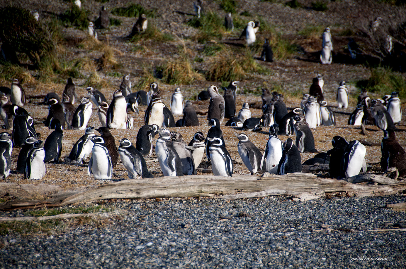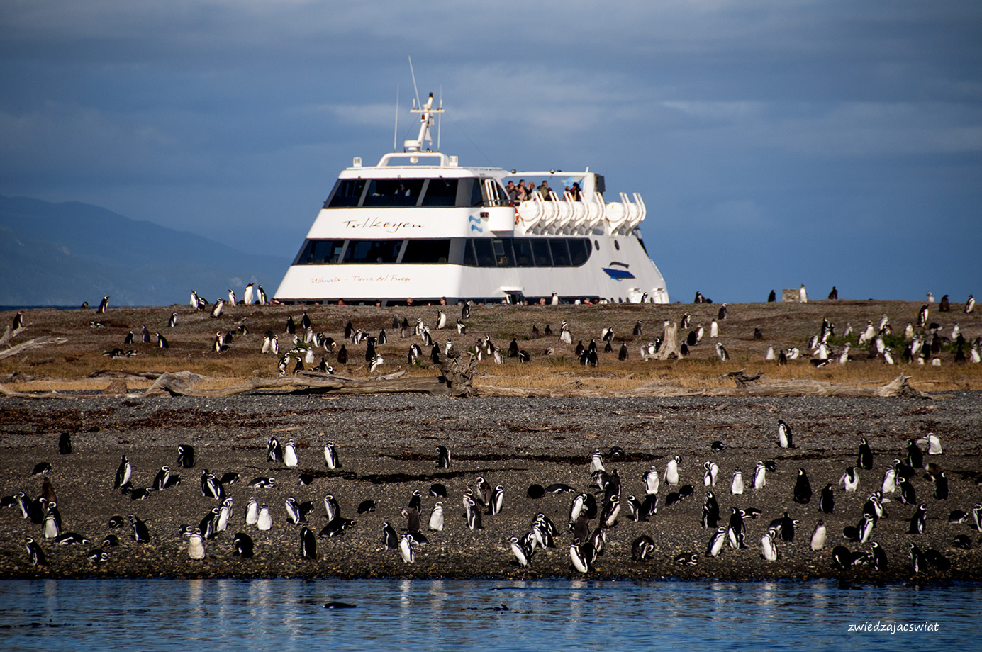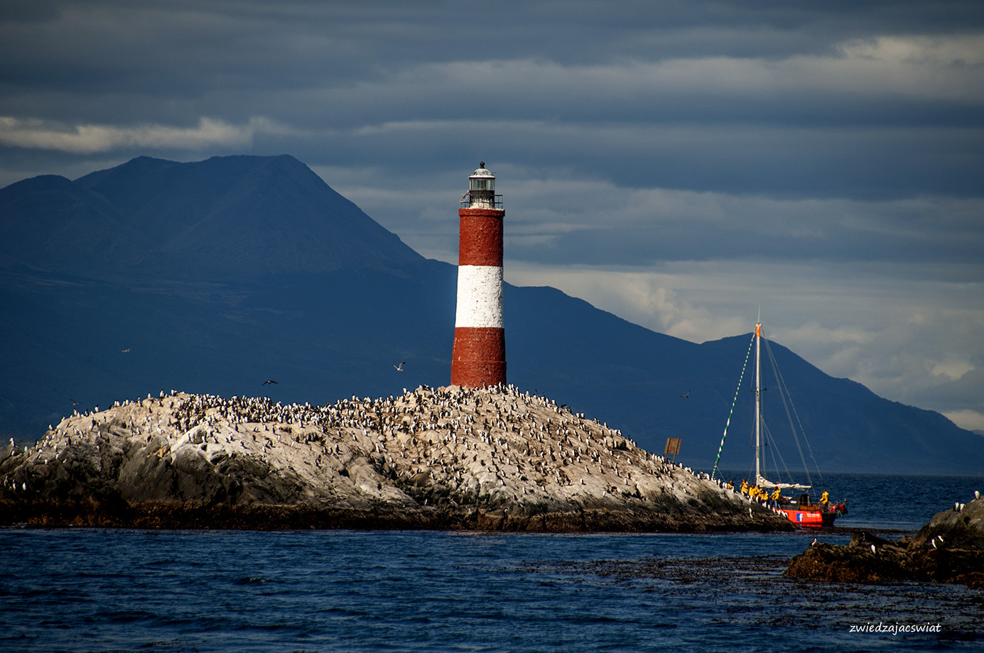 Rozpędzający się katamaran tnie wody zatoki, pozostawiając za sobą spienione fale i panoramę Ushuai z ośnieżonymi szczytami Monte Olivia i Cinco Hermanos. Rozpoczynamy rejs po kanale Beagle’a. Popołudniowe, łagodne słońce, bajkowe kolory i kolejne miejsca, do których dopływamy. Najpierw, niewielka skalista wysepka, a na niej niezliczona ilość kormoranów. Z daleka przypominają pingwiny. Na te jednak, musimy jeszcze poczekać. Kolejna wyspa – Los Lobos. Tym razem oblepiona potężnymi ciałami lwów morskich, wygrzewających się w słońcu. Nie ochłonęliśmy jeszcze z wrażenia (całe szczęście znacznie szybciej zniknął przykry zapach, który towarzyszył nam podczas mijania wysp), a już w oddali pojawia się zarys malowniczej latarni morskiej. Prosta, biało-czerwona konstrukcja w morzu błękitu. I na koniec główna atrakcja rejsu – kolonia pingwinów magellańskich na wyspie Martillo. Urocza namiastka antarktycznych widoków.