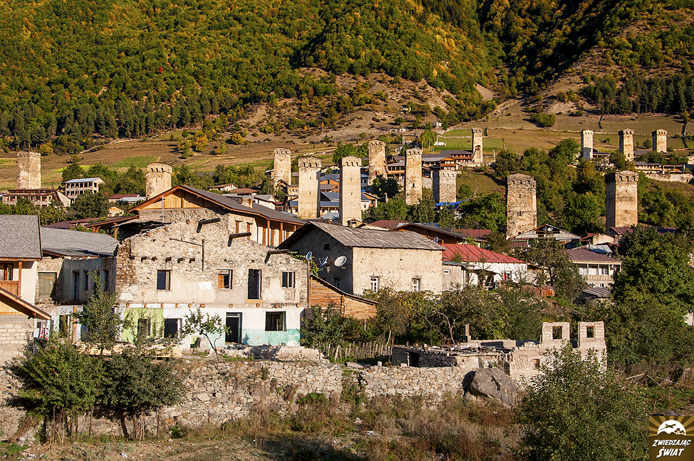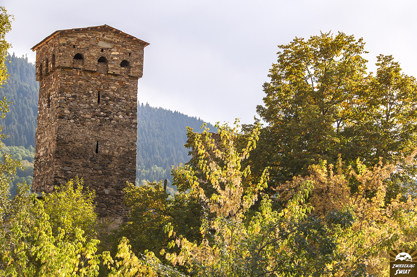 Widzimy je za każdym razem opuszczając nasz hostel, lub do niego wracając. Gdy przekraczamy most, prezentują się dumnie w skupisku na zboczu góry. Średniowieczne wieże. Wizytówka Mestii. Efekt krewkiego charakteru tutejszych mieszkańców, którzy śmiertelnie poważnie (w znaczeniu dosłownym) podchodzili do tradycji zemsty rodowej. Swaneckie wieże wznoszono zatem, nie jako miejsca ochrony przed wrogami zewnętrznymi, ale mścicielami wywodzącymi się spośród sąsiadów.