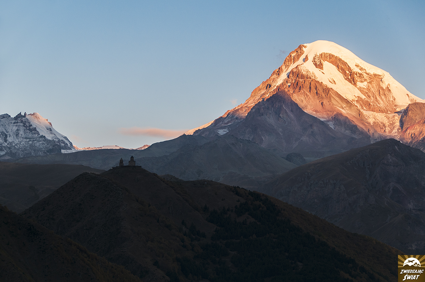 W ciągu zaledwie paru dni naszego pobytu w Gruzji, uczucia tego doświadczamy kilkakrotnie. Widok kaukaskich szczytów – Uszby, Szchary i teraz Kazbeku, to niezapomniane przeżycie. Czy stan zachwytu, uda nam się utrzymać do końca podróży? Zobaczymy.