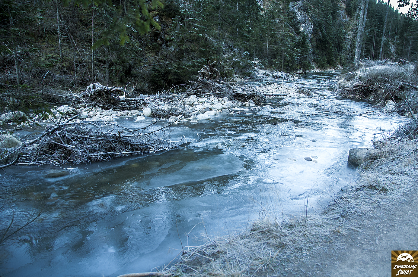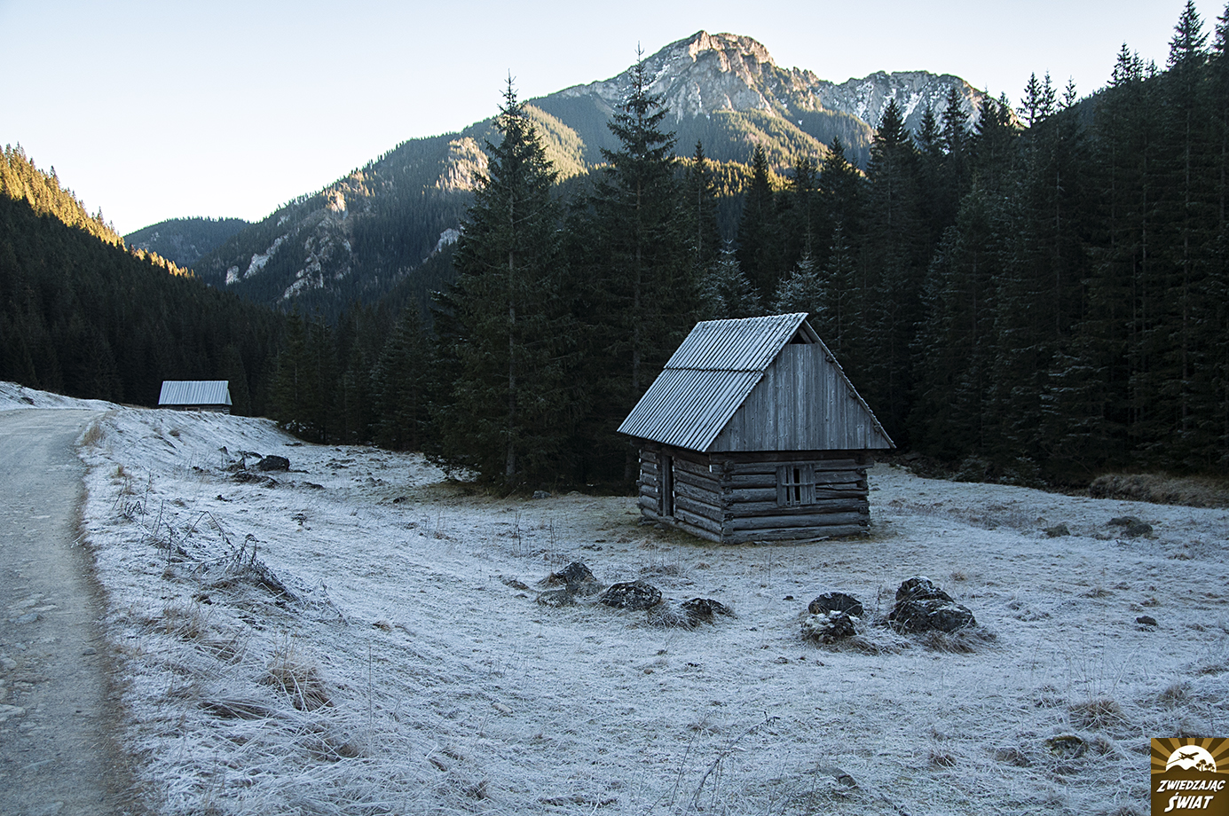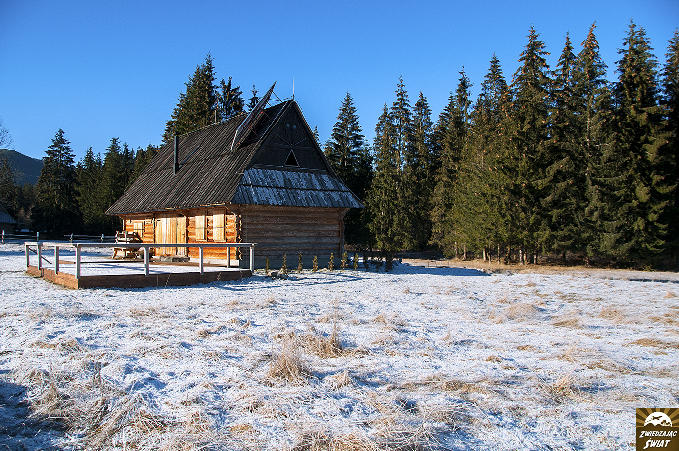 Siwa Polana u wylotu Doliny Chochołowskiej, dobrze znana zarówno nam jak i większości odwiedzających Tatry turystów, powoli wyłania się z objęć nocy. Do wschodu słońca zostało ponad pół godziny. Jest już jednak wystarczająco jasno, by móc cieszyć oczy znajomymi widokami. Z drugiej strony, jak najszybciej chcemy pokonać prowadzącą do schroniska trasę. Nie jest ona głównym celem naszej wędrówki. Przy rozdrożu, jakieś 20 minut drogi przed budynkiem PTTK, opuścimy ją, kierując się w lewo, by czerwonym szlakiem ruszyć na Trzydniowiański, a następnie zielonym na Kończysty Wierch. Tak zamierzamy spędzić przedostatni dzień mijającego roku. I nawet, szczypiący w policzki i nosy kilkunastostopniowy mróz, nie może pokrzyżować nam tych planów.