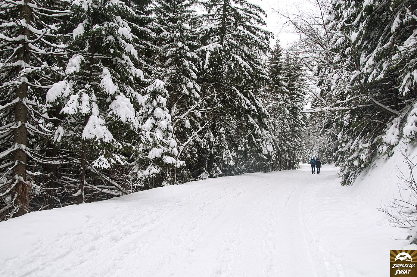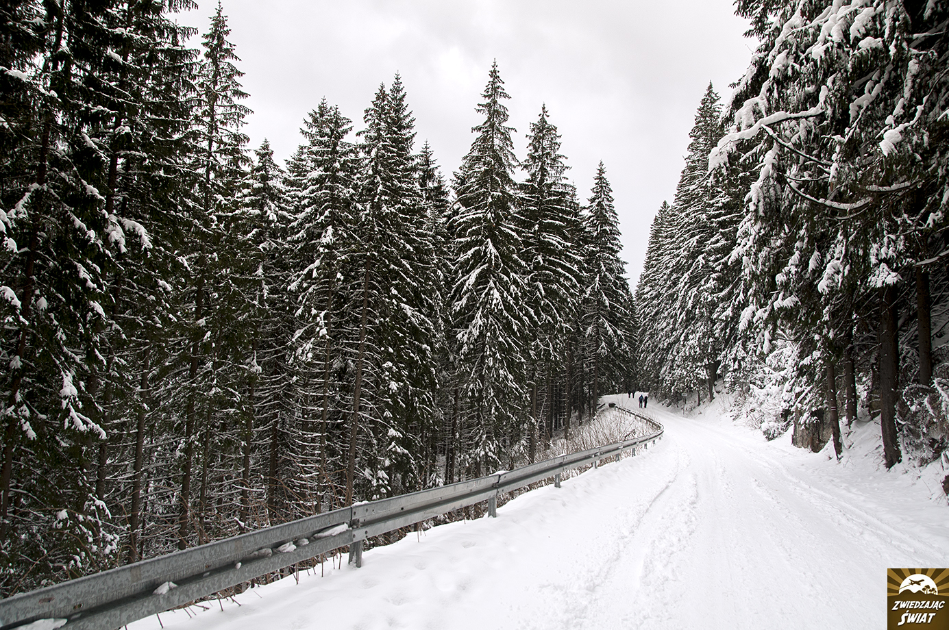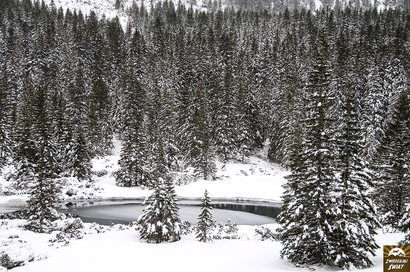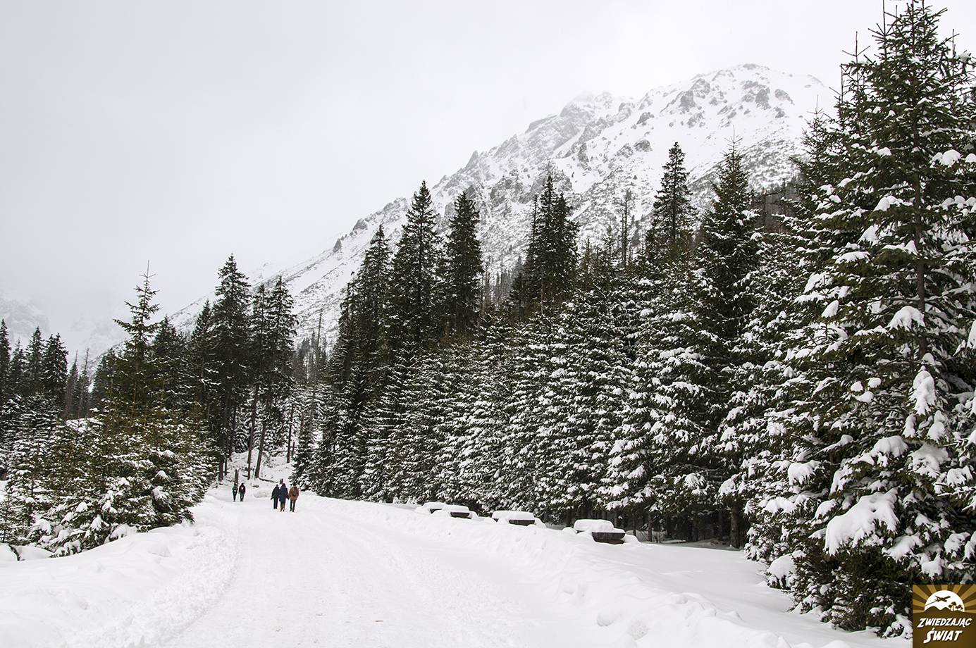 Dzięki śnieżnej powłoce asfaltowa „ceprostrada” do Morskiego Oka zamieniła się w szeroką, białą drogę osłoniętą potężnymi świerkami. Najsłynniejsze tatrzańskie jezioro – w biały deptak z maszerującymi po jego tafli (na własne ryzyko) przechodniami. Bielusieńki był również Czarny Staw pod Rysami, szczególnie za sprawą śnieżnej zadymki, która złapała nas na górze.