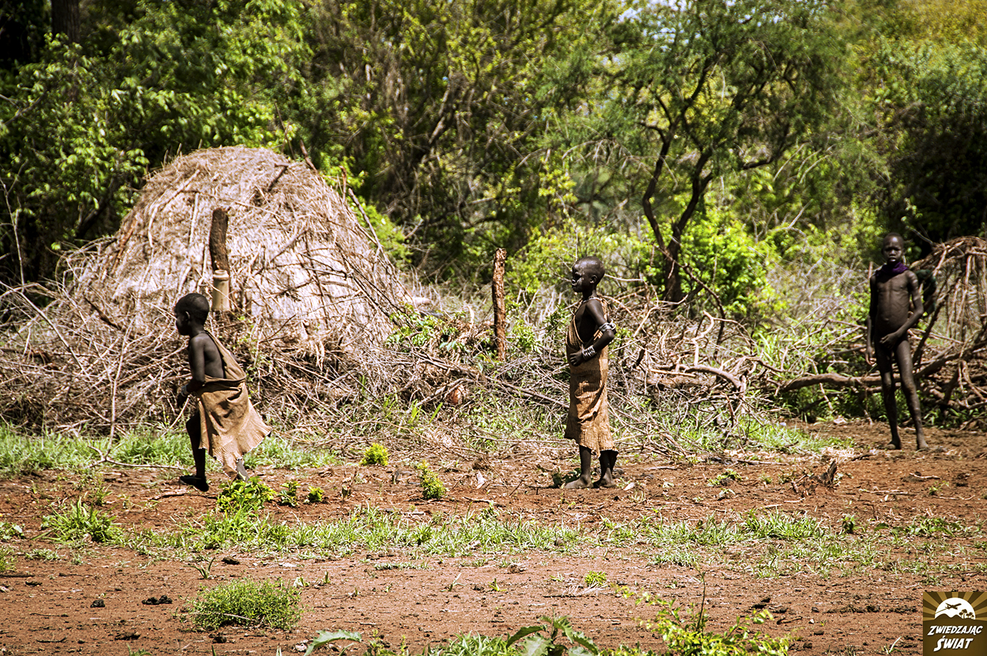 Tej nocy nie śpi nam się dobrze. Betonowa nora z metalowymi drzwiami, czyli nasz pokój, ze słowami przytulny, gościnny, ciepły nie ma nic wspólnego. Narzekać jednak nie warto, w końcu jesteśmy daleko na południu Etiopii, w Dżince miasteczku stanowiącym bramę do Doliny Omo. A Dolina Omo to urzeczywistnienie wizji nietkniętej przez cywilizację Afryki, z dziką przyrodą i żyjącymi z dala od świata plemionami. Rano mamy odwiedzić najbardziej niezwykłe z nich – plemię Mursi. Padający w nocy deszcz szarpie nam nerwy. Po deszczu droga do wiosek Mursi może być bowiem nieprzejezdna.