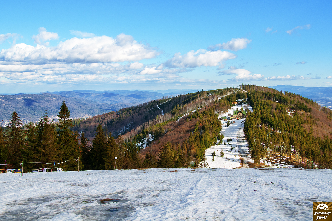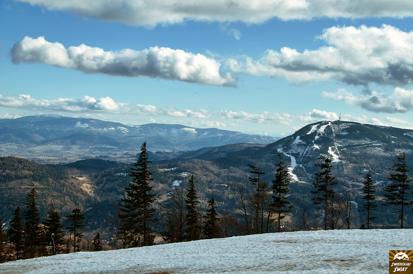 Ośnieżone pasmo tatrzańskich szczytów widać stąd jak na dłoni. Niczym srebrzysta korona, zdobi łagodne beskidzkie grzbiety, falujące poniżej. Teraz już rozumiemy, skąd popularność nazwy tego wzniesienia w Bielsku-Białej i okolicy. I choć do tej pory, Klimczok, o którym mowa, kojarzył nam się przede wszystkim z pamiętającym czasy komuny domem handlowym w stolicy Podbeskidzia, za sprawą widzianej z jego szczytu panoramy Tatr, szybko trafił na listę gór w Beskidzie Śląskim, które podbiły nasze serca.