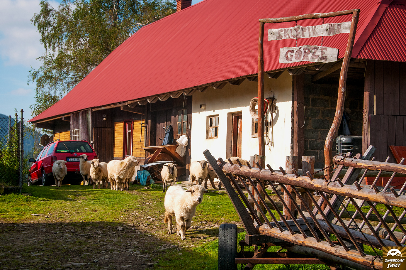 Na Mładej Horze przycupnęło kilka domków i maleńki kościółek, w którym gdy docieramy na miejsce, właśnie odbywa się niedzielna msza. Jako że większość mieszkańców uczestniczy w nabożeństwie, w osadzie wita nas jedynie stadko owiec i dwa pasące się konie. Zmieniamy szlak na czerwony i ruszamy dalej w stronę Małej Rycerzowej (1207 m n.p.m.) i rozłożonej u jej podnóża hali.