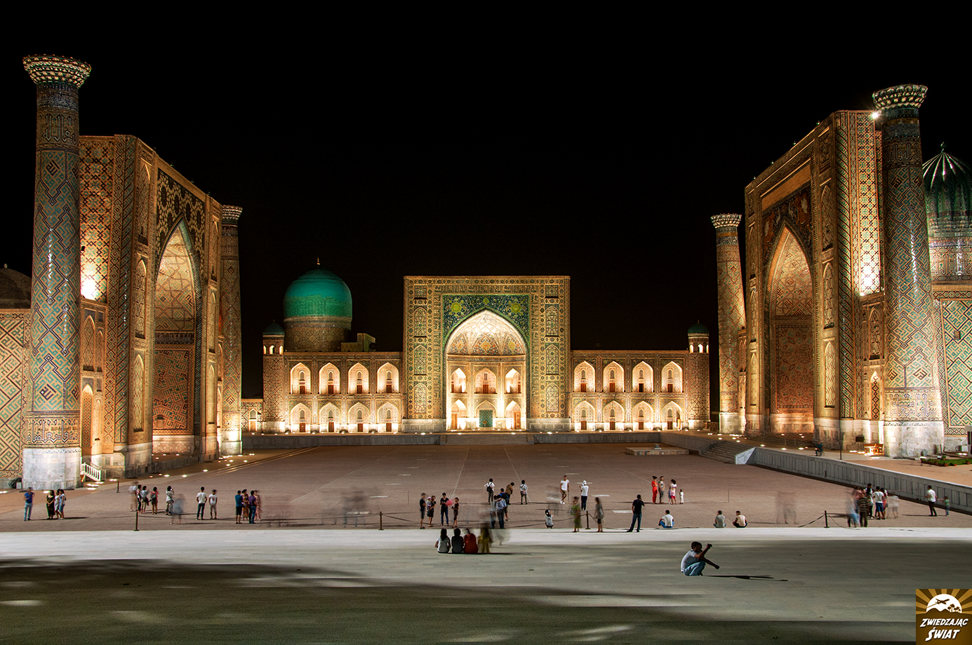 Szybko przekonujemy się, że w Samarkandzie, podobnie jak w Bucharze i inaczej niż w Chiwie, zabytkowe budowle rozrzucone są na dużym obszarze. A jako że Samarkanda to trzecie pod względem wielkości miasto Uzbekistanu, już wiemy, że czeka nas sporo dreptania. Niezrażeni popołudniowym upałem, ruszamy w stronę miejsc, które w Samarkandzie zobaczyć trzeba obowiązkowo. Miejscem takim niewątpliwie jest Registan – plac z trzech stron otoczony majestatycznymi budynkami średniowiecznych medres. Wspaniałe miejsce. Wizytówka miasta.
