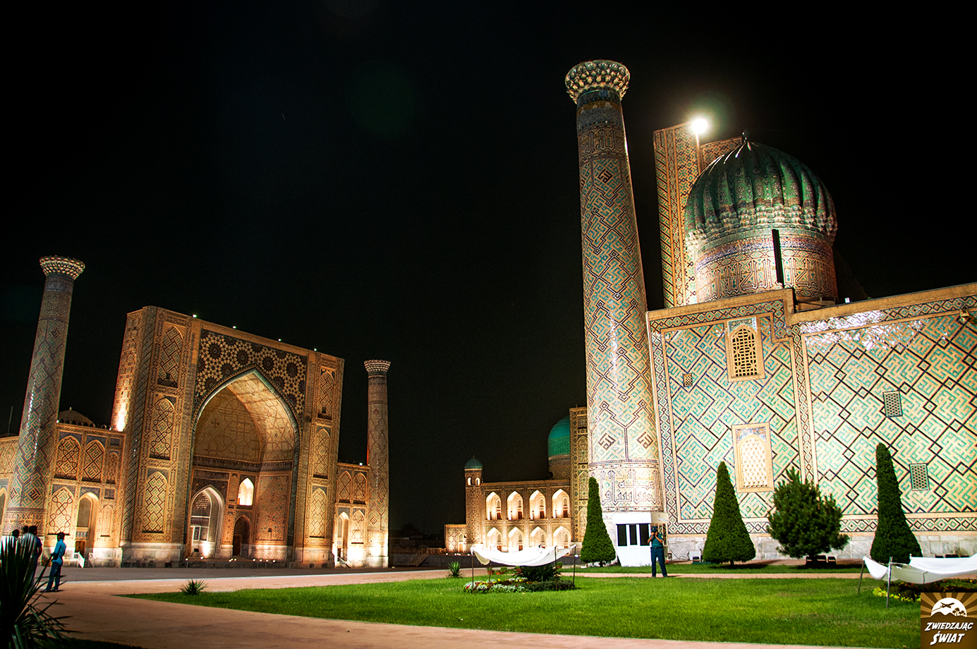 Tak jak zaplanowaliśmy, wieczorem ruszamy na sesję zdjęciową. Zaczynamy od Gur-i Mir. Potem rozstawiamy statyw pod Registanem. I znów równo o 22.00 gasną światła. Piękne budowle zakrywa ciemność. Nasz pobyt w Samarkandzie dobiega końca.