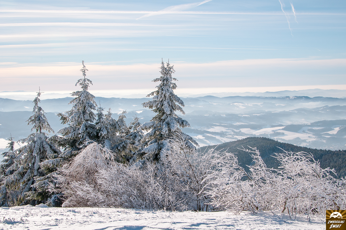 Jak dobrze, że udało nam się zobaczyć to miejsce właśnie w takim wydaniu. Widok ten, to ukoronowanie przedpołudnia pełnego pięknych zimowych obrazów, które zapewniła nam jednodniowa wizyta u czeskich sąsiadów. A dokładnie wycieczka po Beskidzie Śląsko-Morawskim na górę Radhošt, związaną z legendami o pogańskim bogu Radegaście.