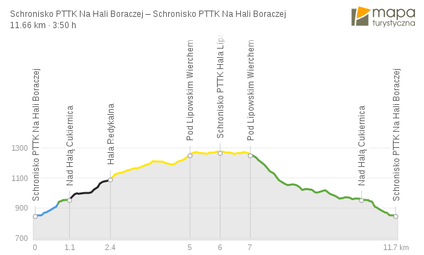 Ustalony szlak – ze startem i metą pod schroniskiem na Hali Boraczej – to 3,5 godziny marszu, ponad 11 kilometrów długości oraz 400 metrów różnicy do pokonania. Biorąc pod uwagę dojazd, śnieżną aurę i czas poświęcony na zdjęcia – trasa idealna na zimowy spacer. A przy tym bardzo widokowa. Szczególnie panorama roztaczająca się z Hali Redykalnej należy do tych, które wspomina się długo.