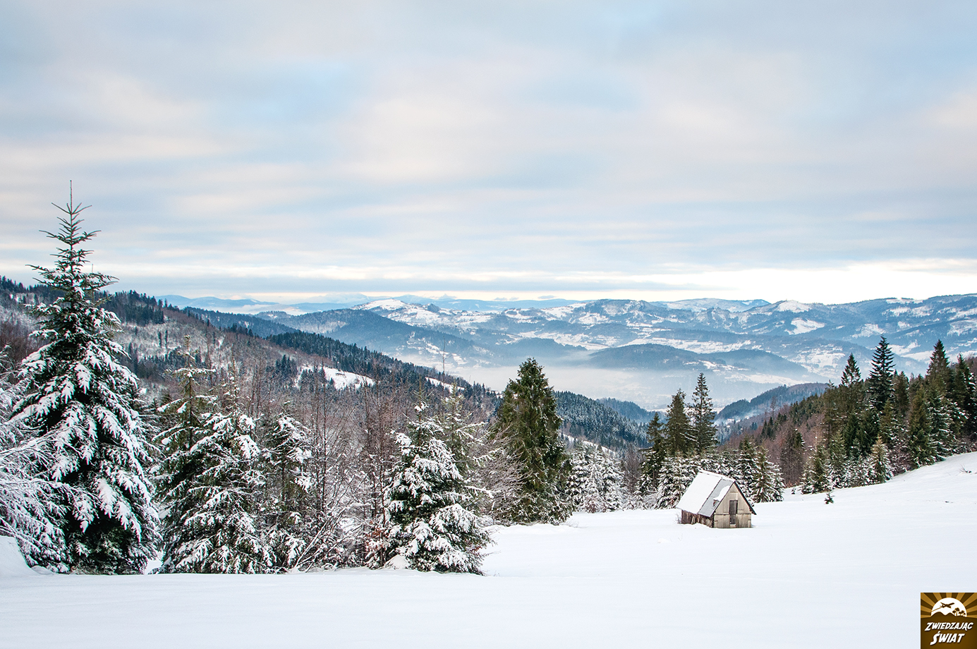 Już sam dojazd autem pod schronisko na Hali Boraczej, w mocno zimowych warunkach, dostarcza nam niemało emocji. W poniedziałkowy poranek na kilka dni przed Wigilią swoją obecnością wybudzamy, sprawiający wrażenie nieczynnego obiekt.