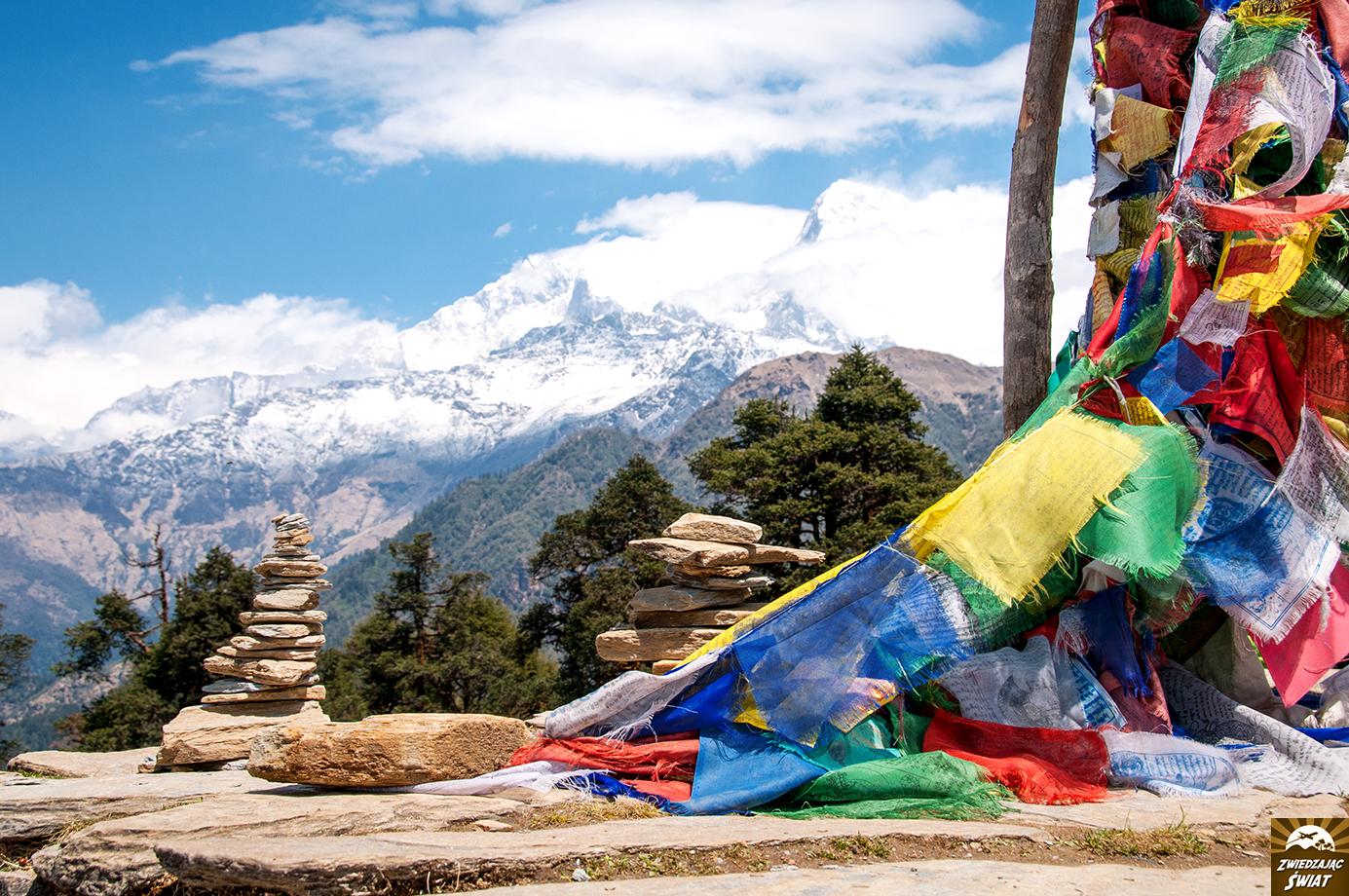 Widok z Poon Hill nie będzie jedyną wspaniałą panoramą, oglądaną tego dnia. Po półtorej godzinie od opuszczenia Ghorepani, szlak biegnący przez gęsty las rododendronów i sosen, dociera do przełęczy Deurali na wysokości blisko 3 tysięcy metrów. Z przełęczy rozpościera się piękny widok m.in. na Annapurnę Południową. Można tu odpocząć na drewnianych lub kamiennych ławach, wśród poruszanych wiatrem modlitewnych flag.