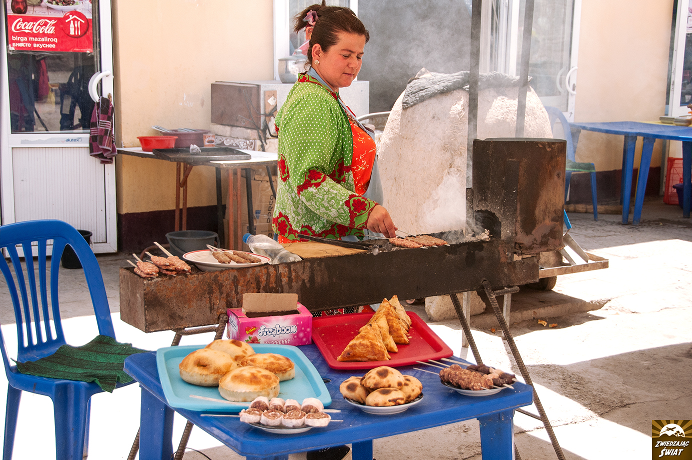 • wspomniane grillowane mięsa, głównie szaszłyki (uwaga na mylącą nazwę kebab – w uzbeckim wydaniu jest to mielone mięso uformowane na kształt szaszłyka serwowane z grilla; nam nie przypadł do gustu),