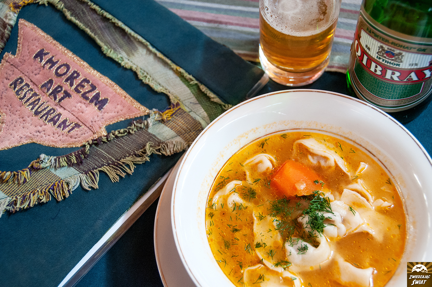 Khorezm Art Restaurant – warto spróbować specjalności Chiwy, czyli dania z zielonym makaronem.