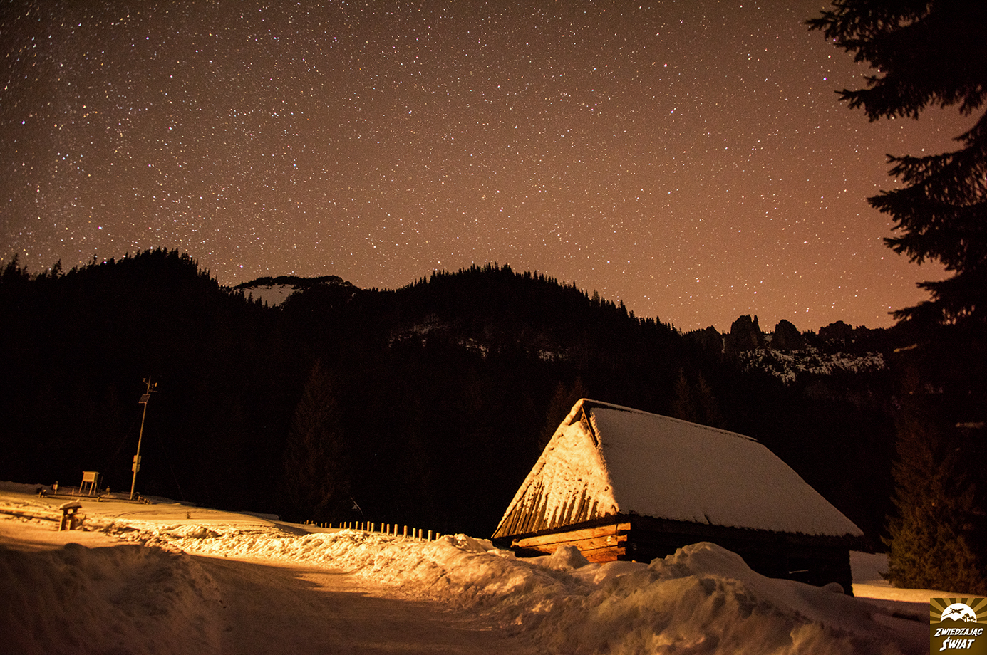 Nad naszymi głowami błyszczą miliony gwiazd. Pod stopami jest ich równie dużo. To lśniące w świetle czołówek płatki śniegu, pokrywającego drogę prowadzącą do parkingu przed Doliną Chochołowską. Tego dnia widok skrzącej w blasku latarek bieli, oglądamy po raz drugi. Towarzyszył nam również wtedy, gdy rozpoczynaliśmy naszą wycieczkę.