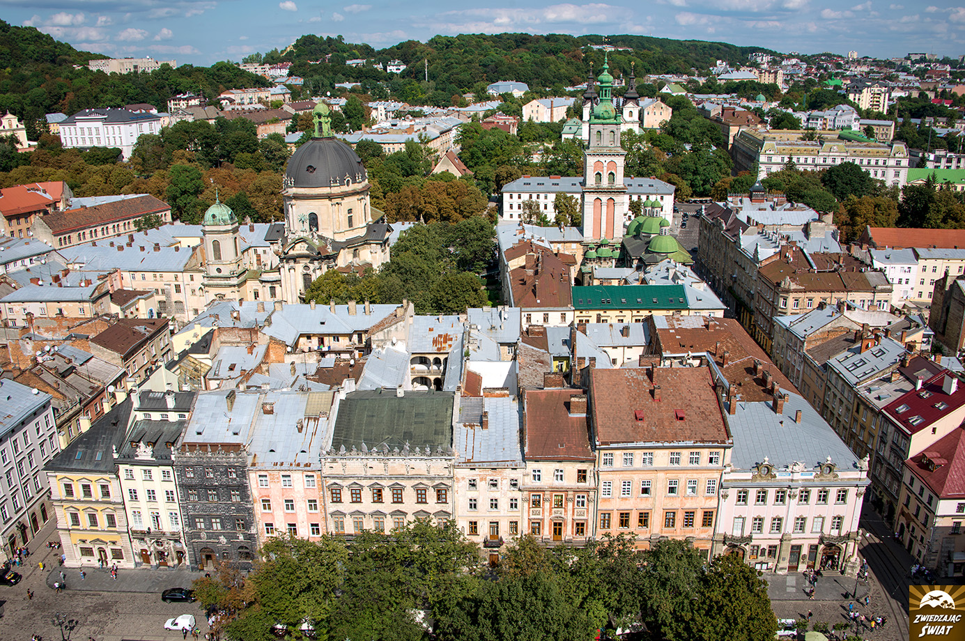 Serce Lwowa, plac o wymiarach 142 na 129 metrów, otoczony przez 44 zabytkowe kamienice, a w nich – liczne muzea oraz restauracje i kawiarnie.