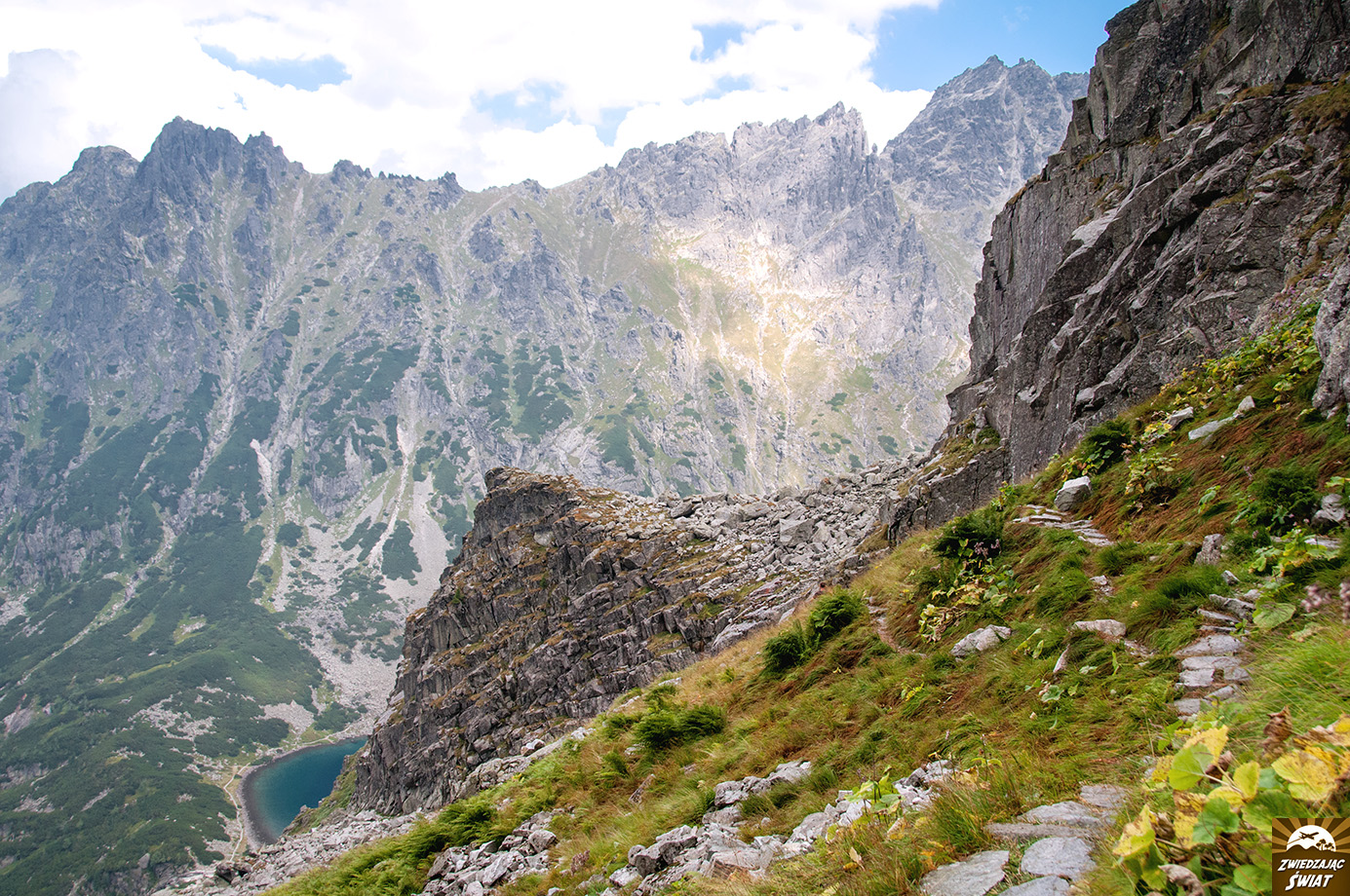 A jak już się wejdzie, to do podziwiania z niej jest: widok na Hińczową Dolinę i jej piękne stawy z jednej strony, oraz na Morskie Oko z drugiej.