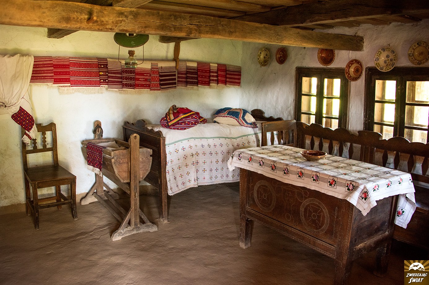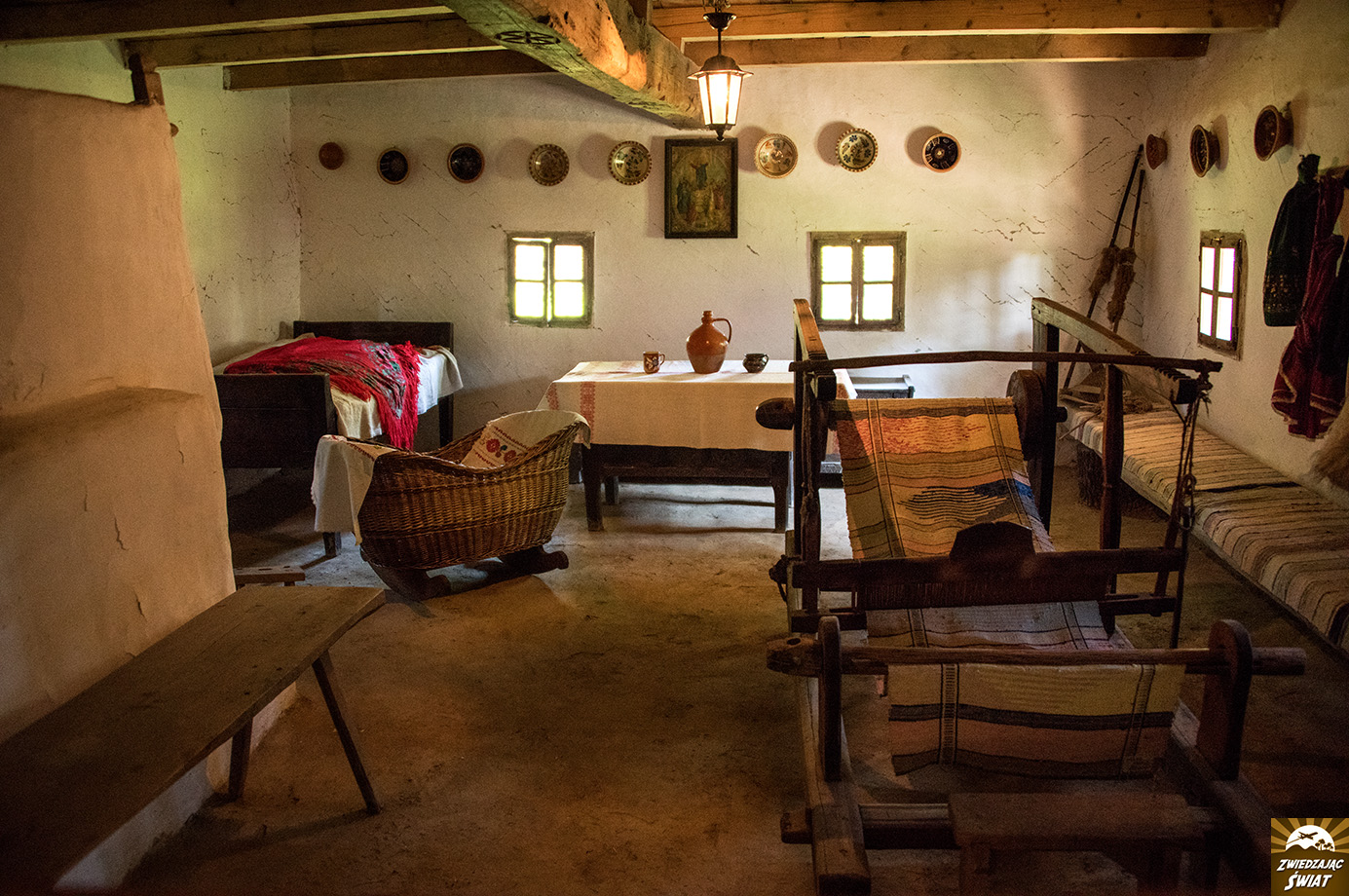 Tu spacerować można pomiędzy wiejskimi drewnianymi chatami oraz zaglądać do ich starannie odtworzonych wnętrz. Wokół kwitną słoneczniki i pachnie ułożone w kopy siano.