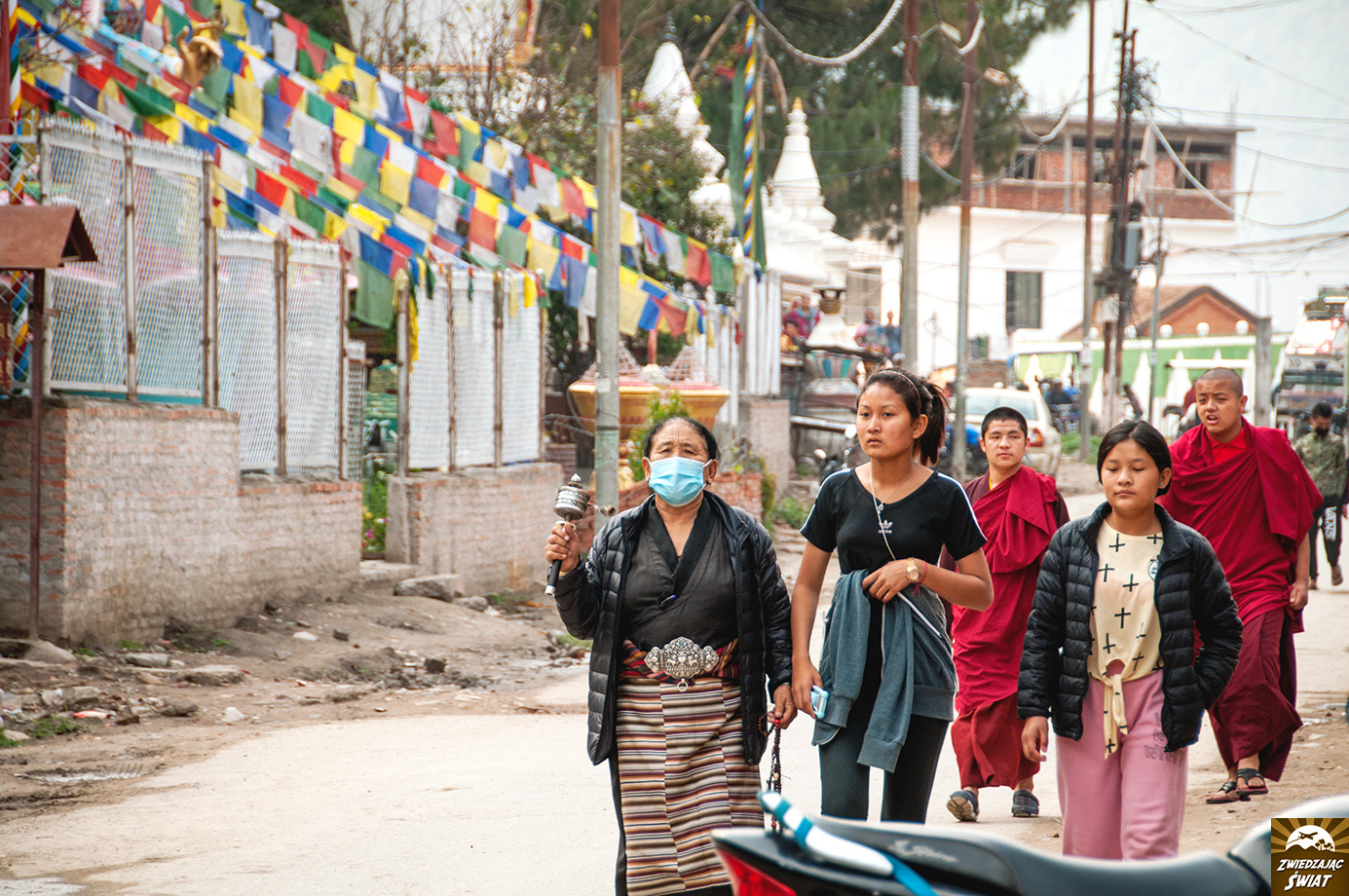 Wokół stupy funkcjonuje obecnie prawdziwe tybetańskie miasteczko, z gompami oraz licznymi sklepikami z rękodziełem. Najlepszym sposobem poznania tego miejsca jest dołączenie do procesji tybetańskich pielgrzymów, okrążających stupę  zgodnie z ruchem wskazówek zegara, przy dźwiękach mantry om mani padme hum i terkocie modlitewnych młynków.
