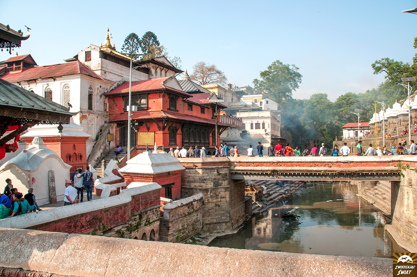 Pobyt w Pashupatinath szokuje – nie tylko samą ceremonią kremacji, płonącymi nieustannie stosami, czy doświadczeniem spotkania w ciasnym zaułku procesji żałobników, z ciałem zmarłego owiniętym jedynie w płótna. Pashupatinath atakuje też innymi obrazami – krów i kóz spacerujących po terenie świątynnego kompleksu, wyjadających porzucone resztki, ludzi dokonujących ablucji w wodach Bagmati, gdzie trafiają prochy zmarłych, umalowanych i przystrojonych sadhu pozujących do płatnych zdjęć z turystami. Gdy jeszcze na wspomniane obrazy nałożą się niepokojące, powtarzane niczym w transie dźwięki i słowa pieśni, śpiewanych przez wiernych w głównej świątyni – wizytę w Pashupatinath zapamiętamy na długo.