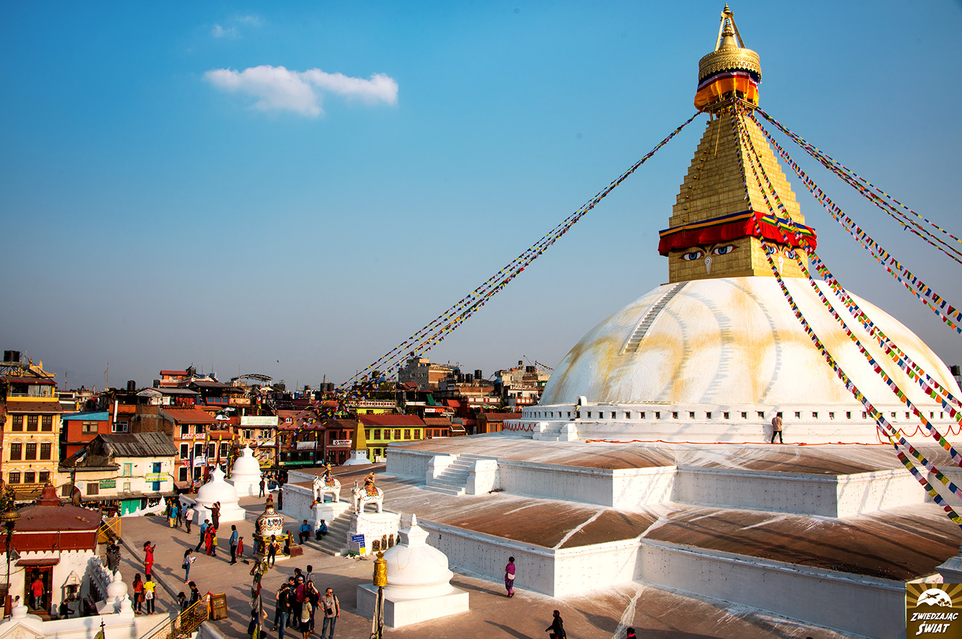 Zaledwie 20-minutowy spacer dzieli świątynię Pashupatinath, od największej w Nepalu buddyjskiej stupy Bodhnath. Te dwie świątynie, to dwa odmienne światy. Pierwsza z nich szokuje obrazami płonących na stosach ciał, pobyt w drugiej – przywraca uczucie harmonii i spokoju.