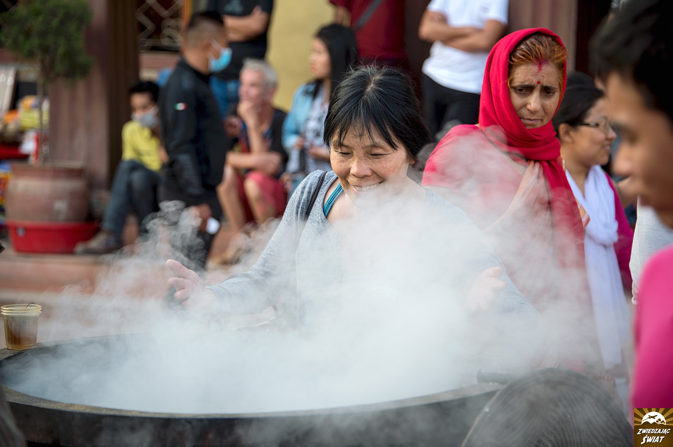 Świątynie Katmandu – okazałe, gromadzące rzesze wiernych i małe, przyuliczne, wokół których bawią się dzieci. Jedne odwiedzane tłumnie przez pielgrzymów, inne – zapomniane. Złocące się w słońcu oraz spłowiałe i zakurzone. Te, w których modlą się buddyści, i te w których czczone są hinduistyczne bóstwa. Ciężko je zliczyć. Często kryją się w najmniej oczekiwanych miejscach – na podwórzach wokół obwieszonych praniem, sypiących się budynków lub w uliczkach, ukryte za straganami, gdzie handluje się czym popadnie. Ich stopnie służą miejscowym do odpoczynku, spotkań i ploteczek, lub sprzedaży rozłożonej na gazecie zieleniny. W Katmandu bowiem, na każdym niemal kroku sacrum spotyka się z profanum.