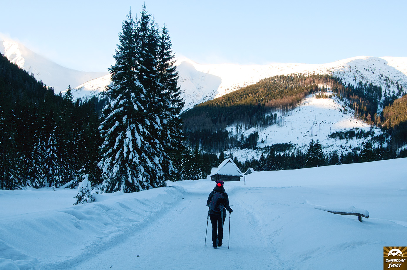 Na parkingu u wylotu Doliny Chochołowskiej jesteśmy jeszcze przed wschodem słońca. Brzmi ambitnie ale w okresie zimowym, kiedy słońce wschodzi późno, nie jest to wielkim wyzwaniem. Szczególnie, gdy rusza się z Zakopanego – a my w okresie przedsylwestrowo-noworocznym właśnie tam urządzamy swoją bazę.