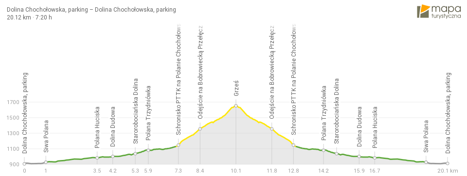 Zielony szlak do schroniska odmierzamy charakterystycznymi punktami. Po około 40 minutach od początku trasy docieramy do Polany Huciska. Latem ten asfaltowy odcinek można pokonać wypożyczonym u wylotu doliny rowerem lub kolejką „Rakoń”, zimą „z buta”, ewentualnie na nartach.