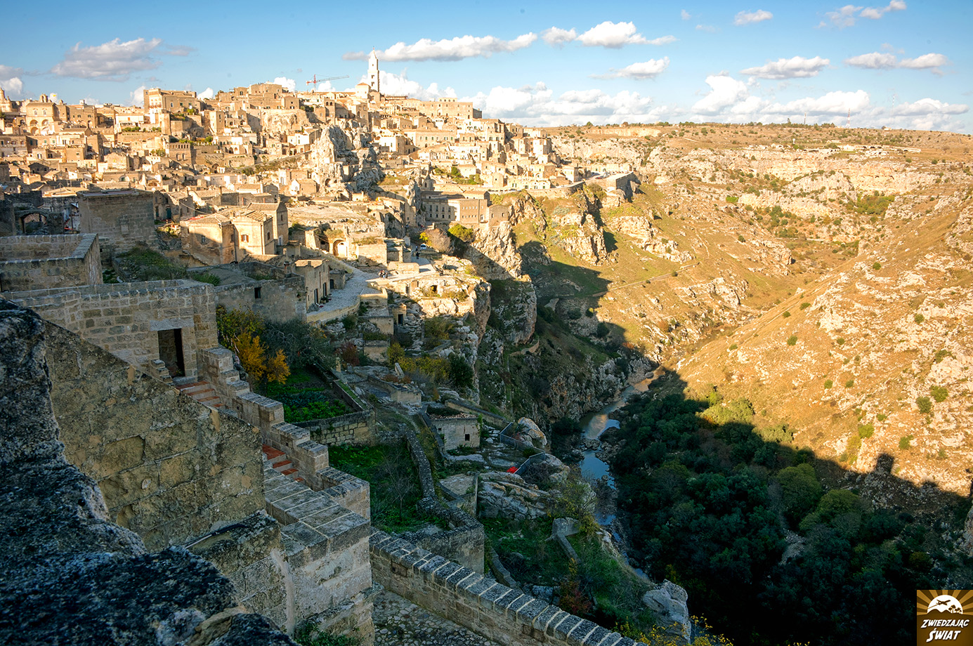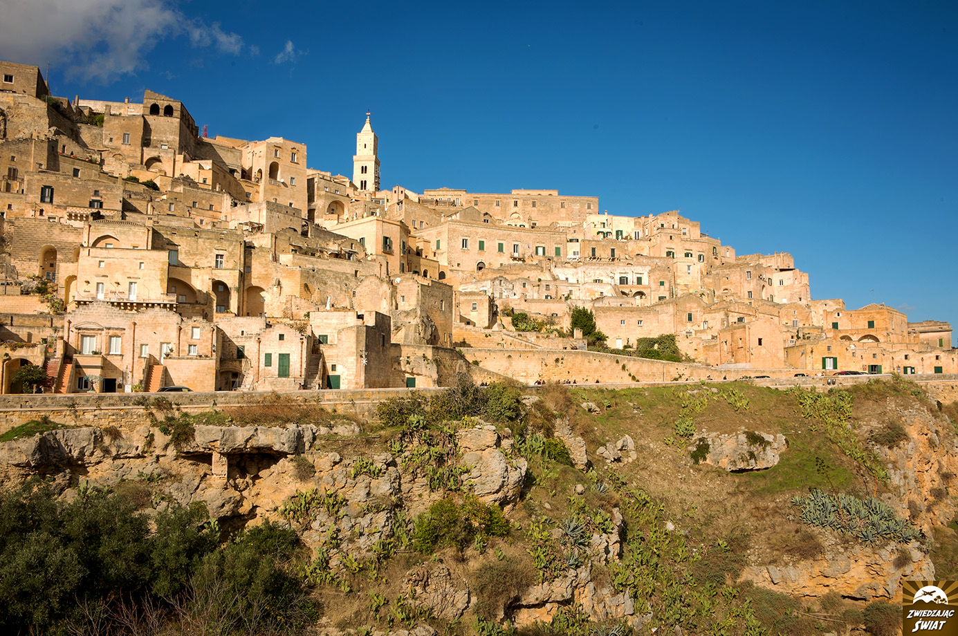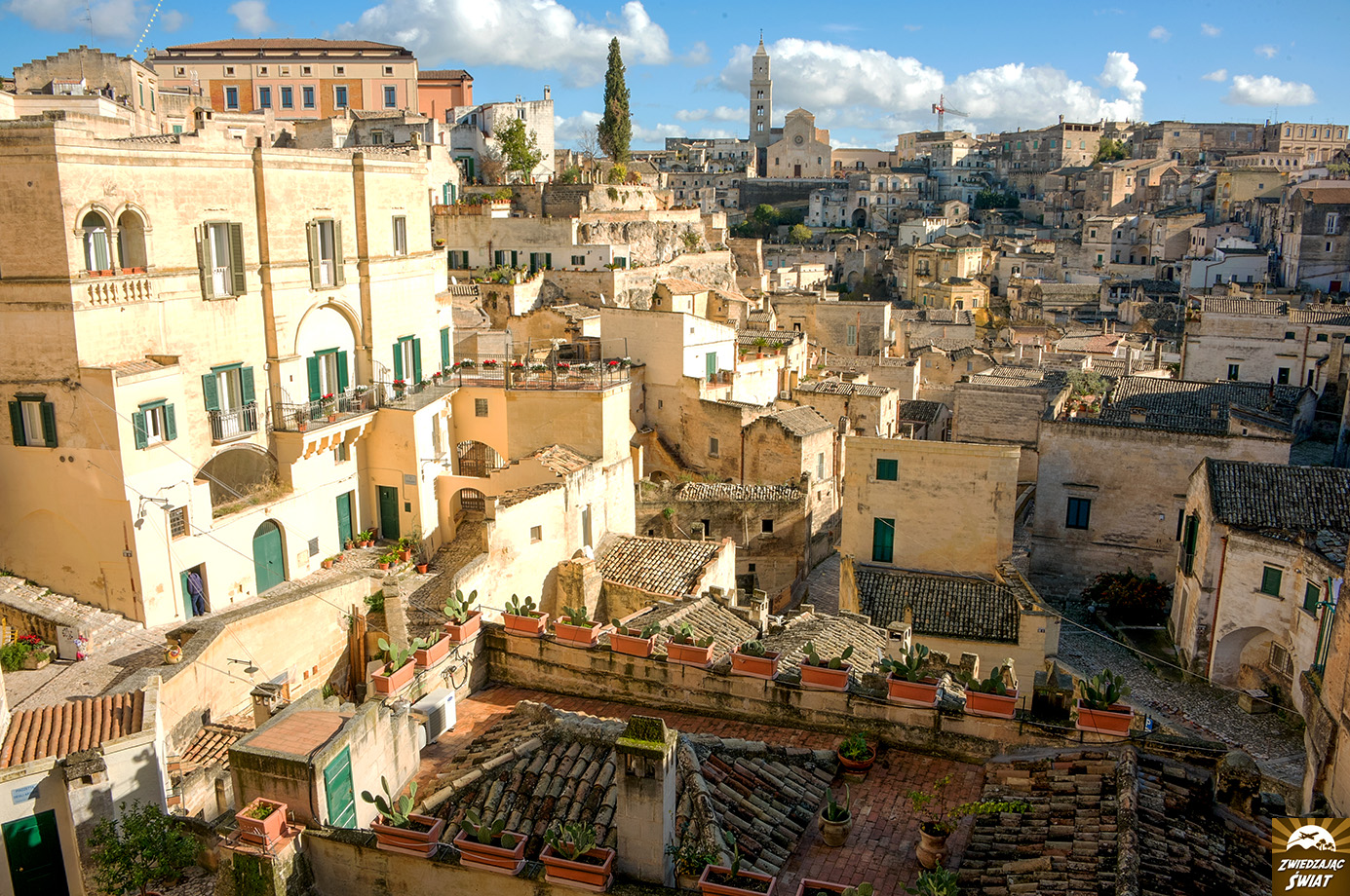 Błądzenie labiryntem uliczek pomiędzy oryginalnymi domostwami Sassi to niezapomniane przeżycie. Równie niezwykłym jest widok miasta i jego okolicy z dalszej perspektywy – najlepiej podczas wschodu lub zachodu słońca na terenie Parco della Murgia Materana. To tu znajduje się punkt widokowy Belvedere di Murgia Timone oraz kolejne skalne kościoły i groty.