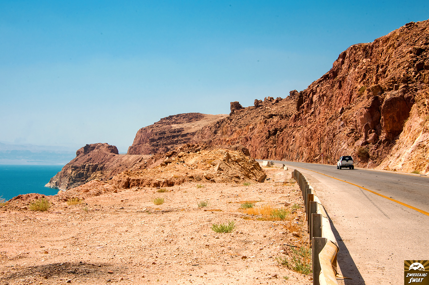 Fantastyczny widok linii brzegowej i wód Morza Martwego zapewnia przejazd na trasie Akaba-Madaba. Teoretycznie odcinek ten można pokonać w 3,5 godziny. Nam z postojami i zdjęciami zajął on 7 godzin 😉