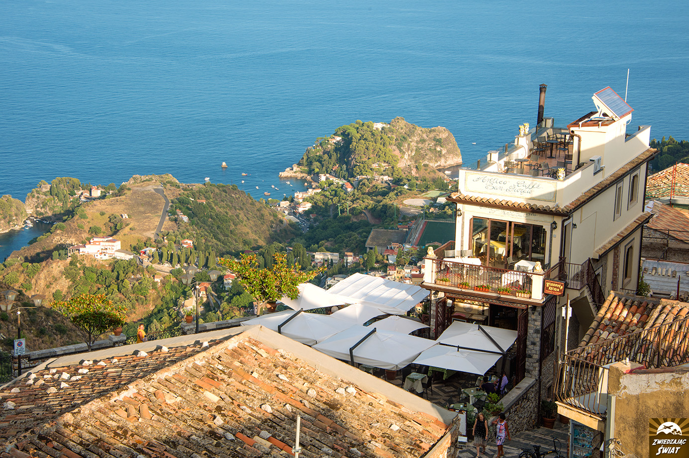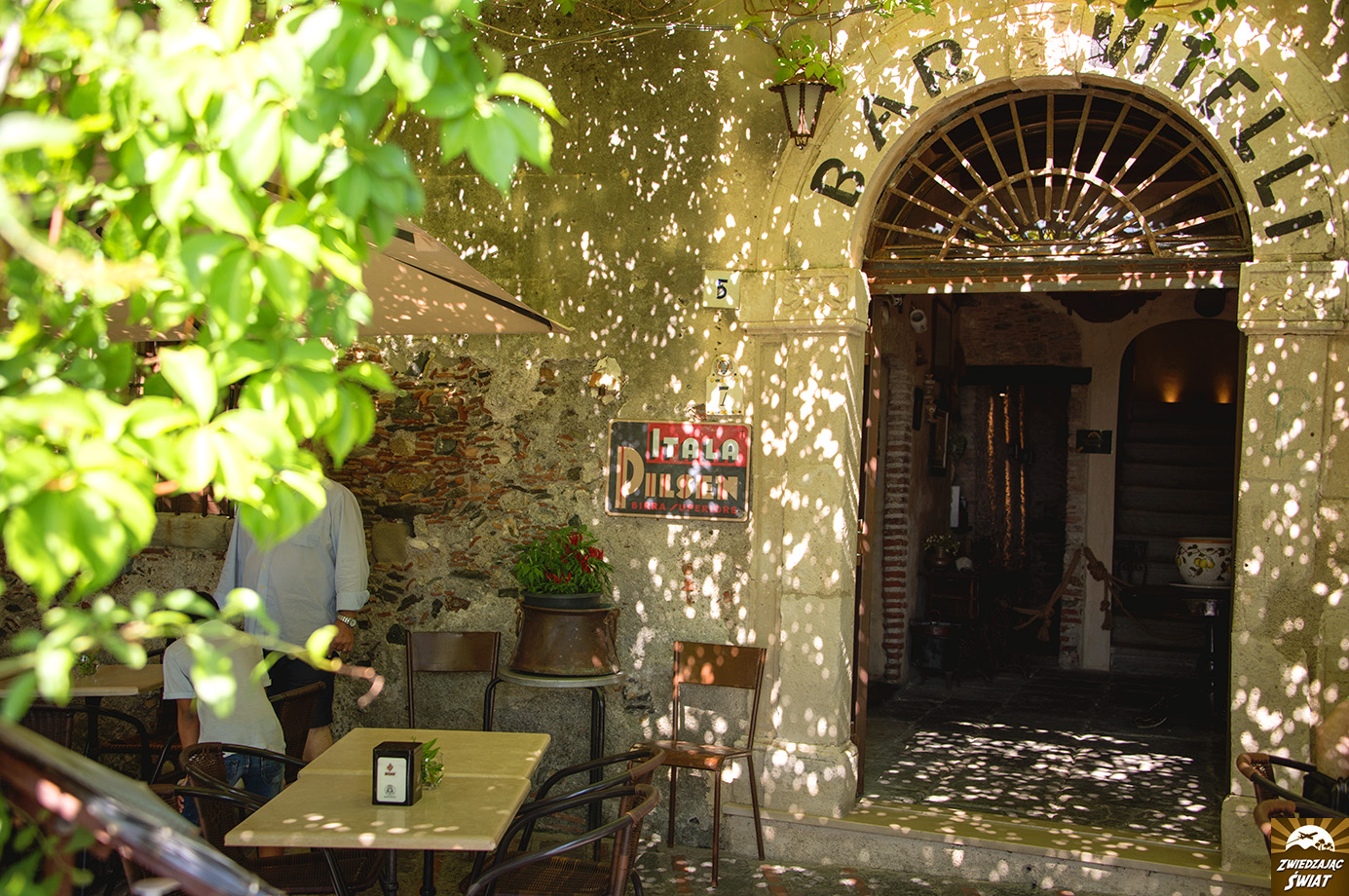 Savoca to zdecydowanie nasz numer jeden wśród odwiedzonych na Sycylii miejsc. Możemy śmiało polecić nasz plan pobytu w miasteczku, a szczególnie pomysł z pozostaniem tam na noc oraz wybór miejsca noclegowego, czyli Pentefur B&B (63 € za noc). Świetna miejscówka! I jeszcze to wspaniałe śniadanie na tarasie z widokiem na drogę, którą w „Ojcu Chrzestnym” tłumek gości Michaela Corleone przemierzał w drodze na wesele – niezapomniane przeżycie. Podobnie jak wizyta w barze Vitelli, do tej pory pielęgnującym pamiątki związane z kręceniem w miasteczku scen do słynnego Il Padrino. Jest klimat! Idealne miejsce na popołudniową kawę, granitę lub przekąski. Z kolei na konkretny posiłek polecamy restaurację La Pineta Di Garufi Vincenza – wystrój bardzo przeciętny, za to jedzenie smacznie i niedrogie.