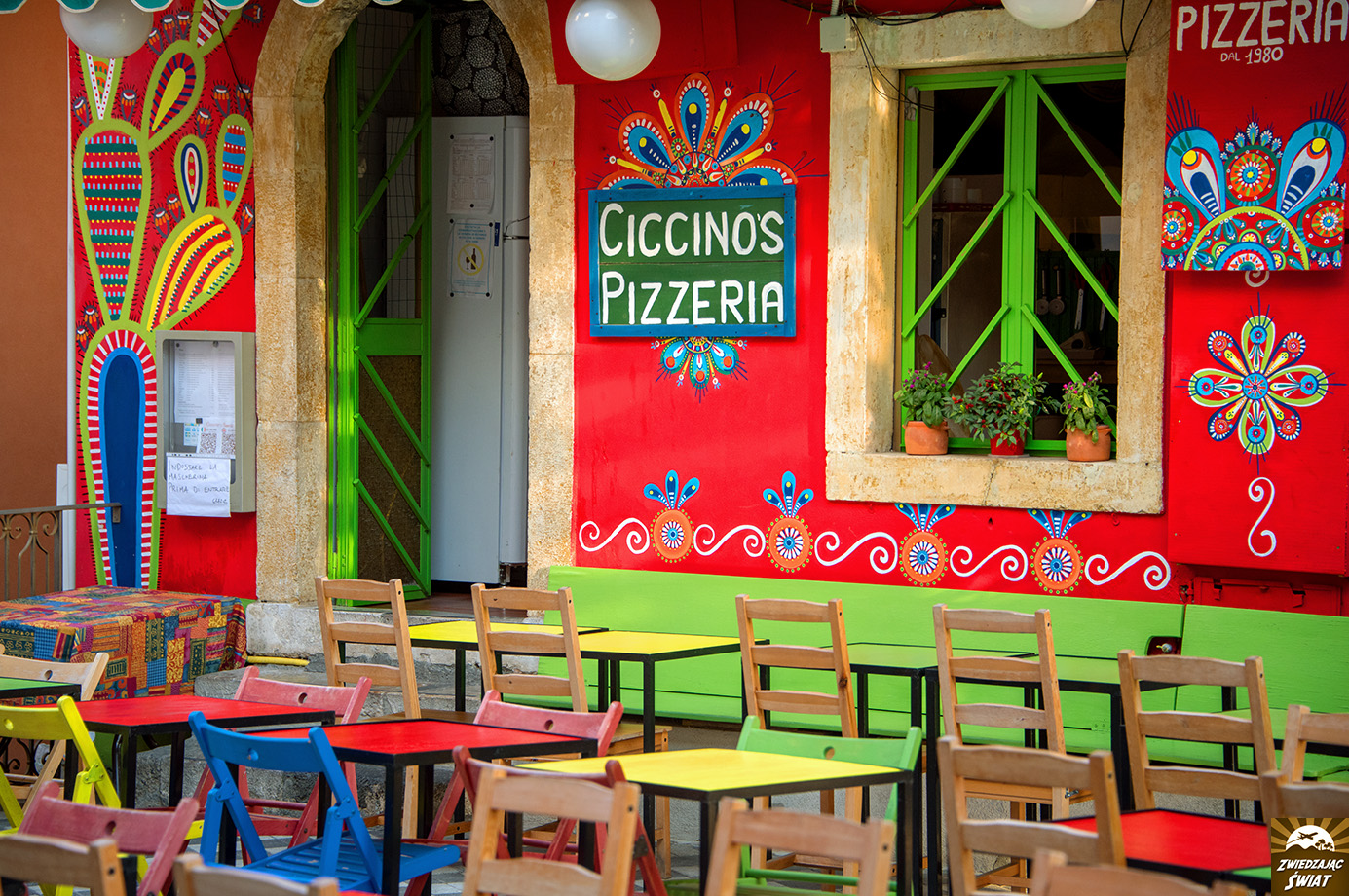 Gdy już uda wam się dotrzeć na wzgórze, na którym rozłożone jest Castelmola warto wdrapać się od Piazza San Antonino do ruin zamku wieńczącego wzniesienie, spojrzeć z góry na Taorminę, wybrzeże, w stronę Etny i zejść w okolicę Piazza del Duomo z kościółkiem San Giorgio oraz … rozstawionymi w niewielkiej odległości od niego stolikami pizzerii i pobliskiej knajpki.