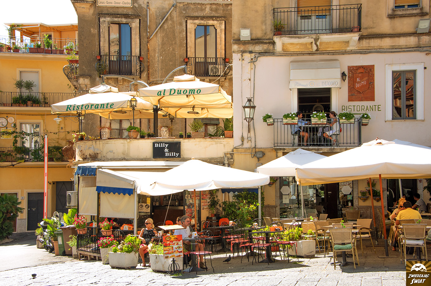 Spacer w słońcu deptakiem Corso Umberto od bramy Porta Catania do Porta Messina to czysta przyjemność. Do tego pyszne cibo di strada w obleganej przez miejscowych knajpce w pobliżu katedry św. Mikołaja, widok jachtów na tle granatowych wód morza oglądany z Piazza IX Aprile, no i oczywiście teatr grecki położony na wzgórzu (bilet 10 €/os.) z widokiem na Etnę i wspomniane wcześniej miasteczko Castelmola – naszym zdaniem to plan doskonały na spędzenie czasu w Taorminie.