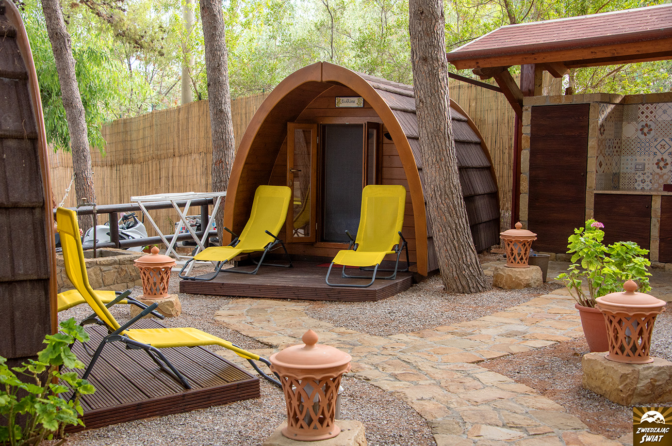 Co do noclegu – nie spaliśmy w samym Cefalu. Dysponując wypożyczonym autem zdecydowaliśmy się na pobyt w Campeggio Sanfilippo. Ten oddalony o 3 km od miasta kompleks składa się z uroczych bungalowów z niewielkimi patio, na których rozstawione są leżaki. Całość rozlokowana jest wśród sosen i drzew oliwnych z dostępem do pobliskiej plaży. Na terenie kempingu znajduje się bar, wspólne łazienki i toalety, zapewniony jest dostęp do WiFi. Bardzo schludne i dobrze zorganizowane miejsce. Ciekawa alternatywa dla tradycyjnych noclegów.