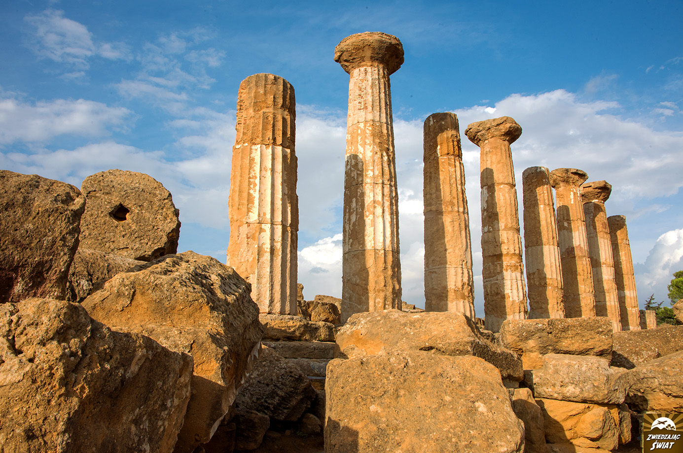 Tego miejsca na Sycylii nie może pominąć żaden miłośnik starożytnych zabytków. Mowa o Valle dei Templi, czyli Dolinie Świątyń niedaleko Agrigento będącej ogromnym parkiem archeologicznym, którego serce stanowią lepiej lub gorzej zachowane budynki sakralne. Większość z nich pochodzi z V wieku p.n.e. Budynki te to pozostałość po Grekach, którzy w starożytności skolonializowali część wyspy. Prezentują styl dorycki a wykonane zostały z tufu, lokalnej skały wulkanicznej, której zawdzięczają intensywnie żółtą barwę.