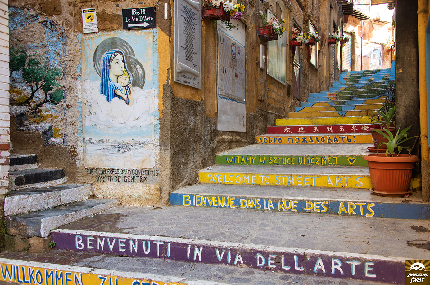 Na koniec kilka słów o mieście stanowiącym bazę wypadową do obu wspomnianych atrakcji. Mowa oczywiście o Agrigento, które dla nas stało się miejscem noclegu po dniu spędzonym na podziwianiu Doliny Świątyń i Schodów Tureckich. Wybrany obiekt noclegowy, okazał się klimatycznym mieszkaniem w starej kamienicy, z balkonem wychodzącym na wąską, zabytkową uliczkę. Poczuliśmy się prawie jak w kubańskiej Hawanie.