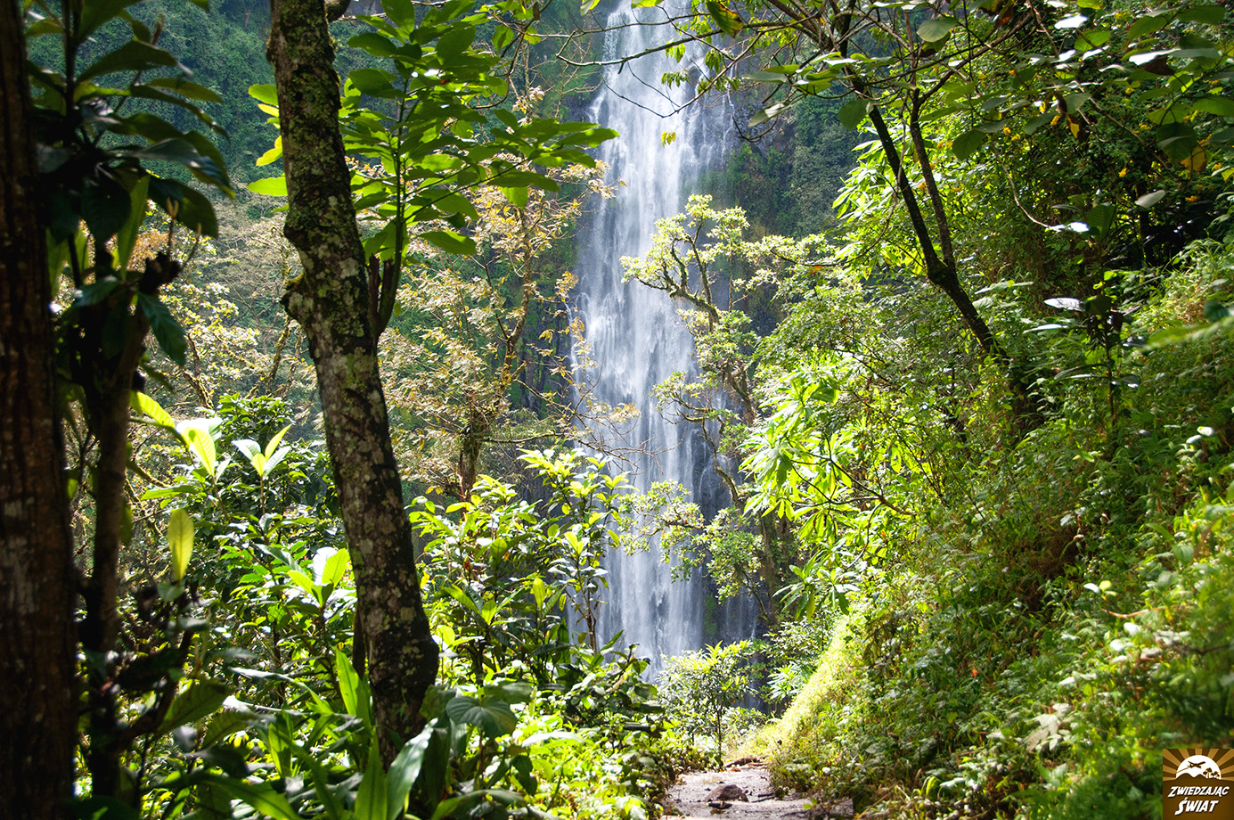 Spieniona woda z hukiem spada z wysokości około stu metrów i rozbijając się tworzy orzeźwiającą mgiełkę. Właśnie dotarliśmy pod wodospad Materuni i zachwyceni chłoniemy jego widok oraz rześką aurę. Ten widok to zwieńczenie godzinnej pieszej wycieczki rozpoczętej w wiosce ludu Chaga, do której krętą, wyboistą drogą dotarliśmy naszymi vanami. Wioska położona jest w górach, wśród tropikalnej roślinności i plantacji kawy. Nic więc dziwnego, że po powrocie z wycieczki pod wodospad, zostajemy zaproszeni na ceremonię przygotowania tego gorącego, aromatycznego napoju. Są tańce, śpiewy, palenie i tłuczenie ziarna. Autentyczna, radosna atmosfera.