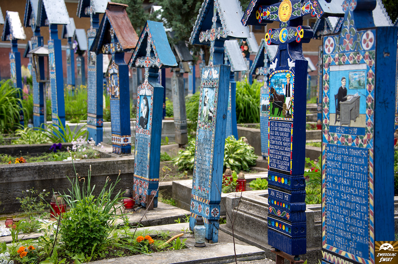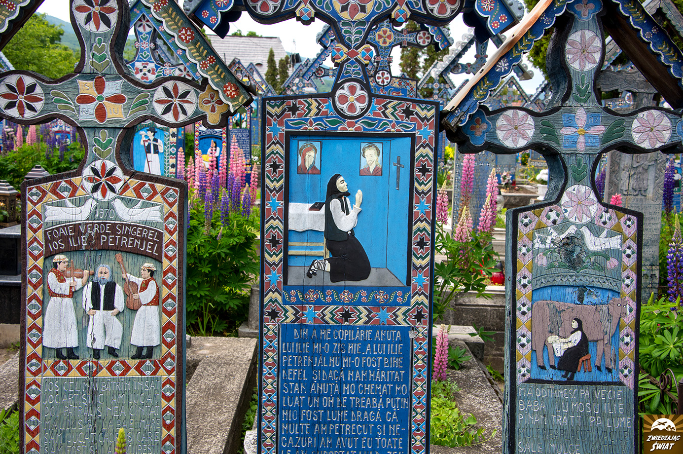 Podróżując przez rumuński Maramuresz poza drewnianymi cerkwiami, warto odwiedzić jeszcze jedną atrakcję regionu. Chodzi o Wesoły Cmentarz położony w miejscowości Sapanta. To jedyne w swoim rodzaju miejsce. Wchodząc na teren cmentarza wkracza się w kolorowy, pogodny świat dawnych mieszkańców wioski, których życie, radości i pasje, a niekiedy przyczynę śmierci uwieczniono na drewnianych, malowanych na niebiesko nagrobkach. Żywot zmarłych streszczają zabawne epitafia umieszczone pod obrazkami.