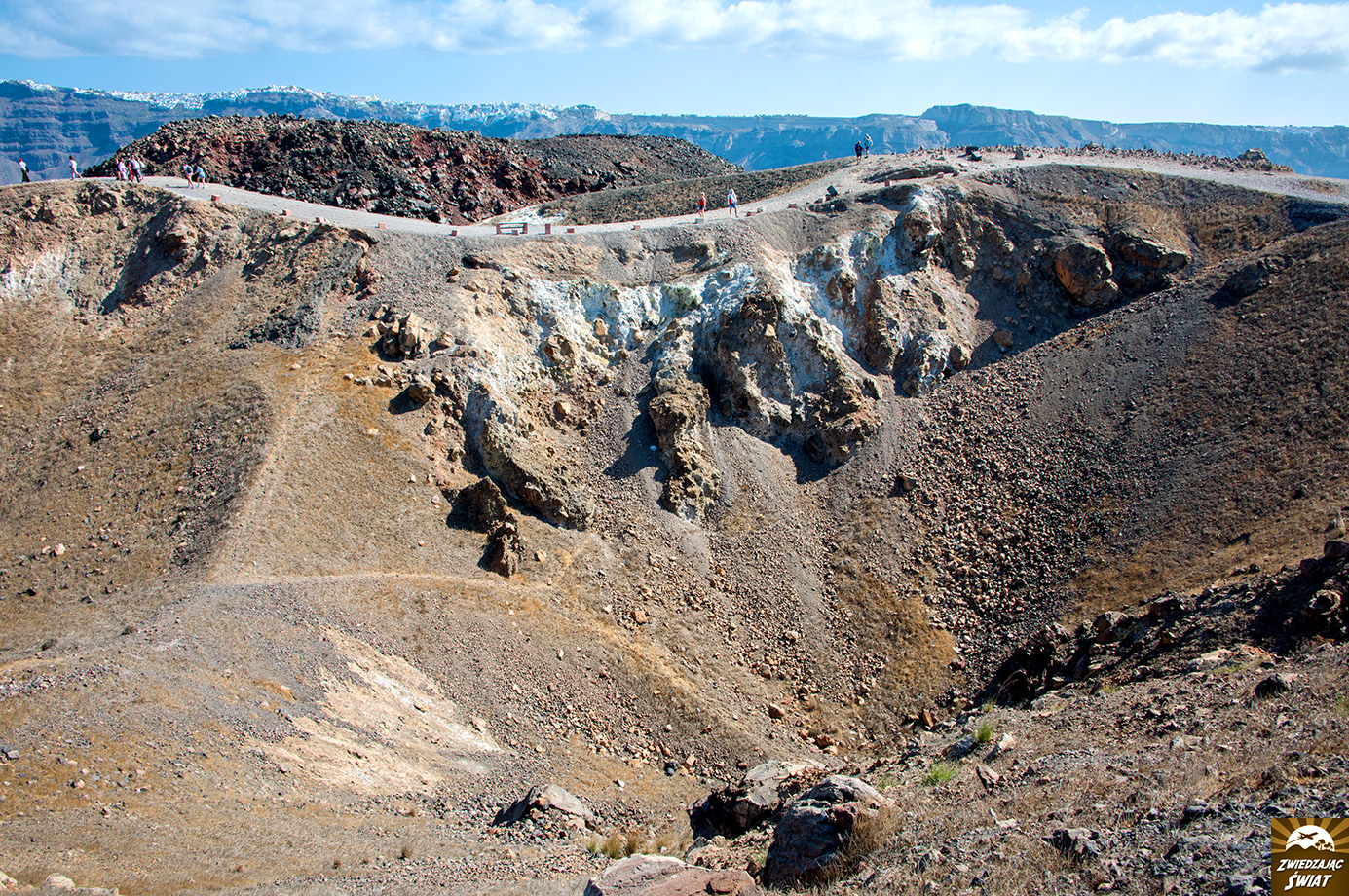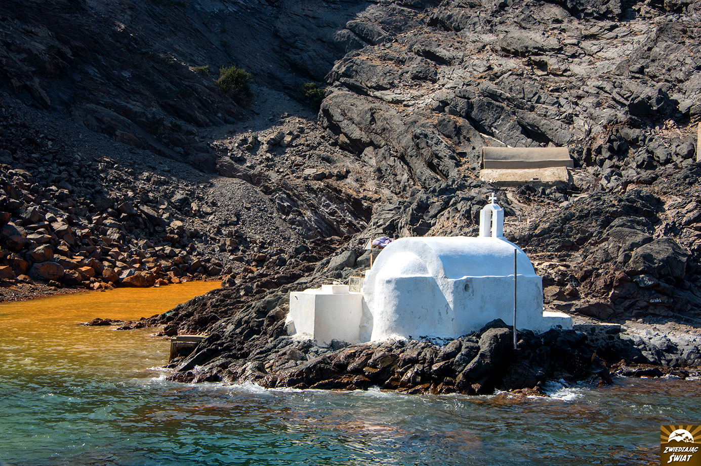 Pierwszym punktem takiego rejsu jest spacer po wulkanicznej wyspie Nea Kameni. Stąd można spojrzeć na Firę zawieszoną na brzegu kaldery Santorini, a potem obejść tutejszy krater dookoła, poczuć w nozdrzach wyziewy siarki i wulkaniczny pył pod nogami.