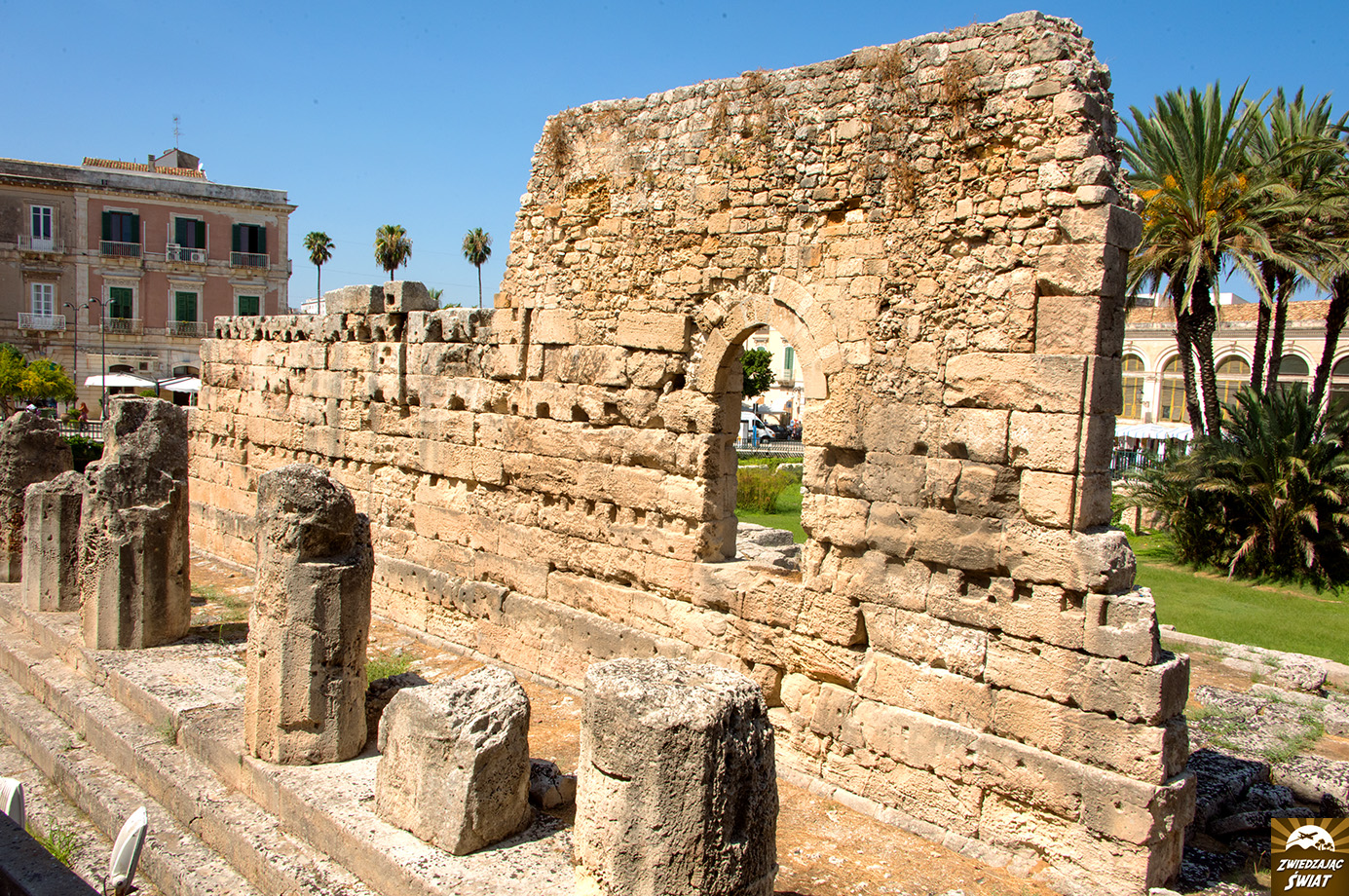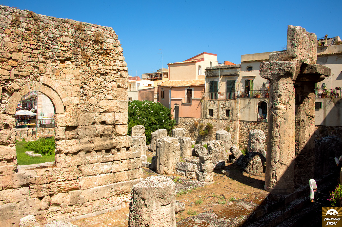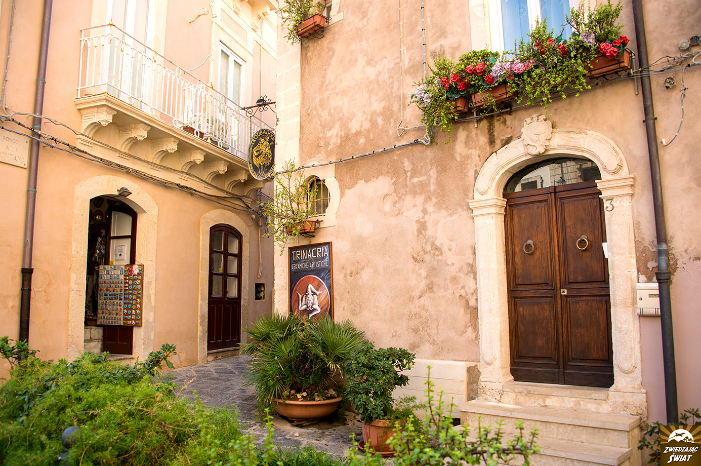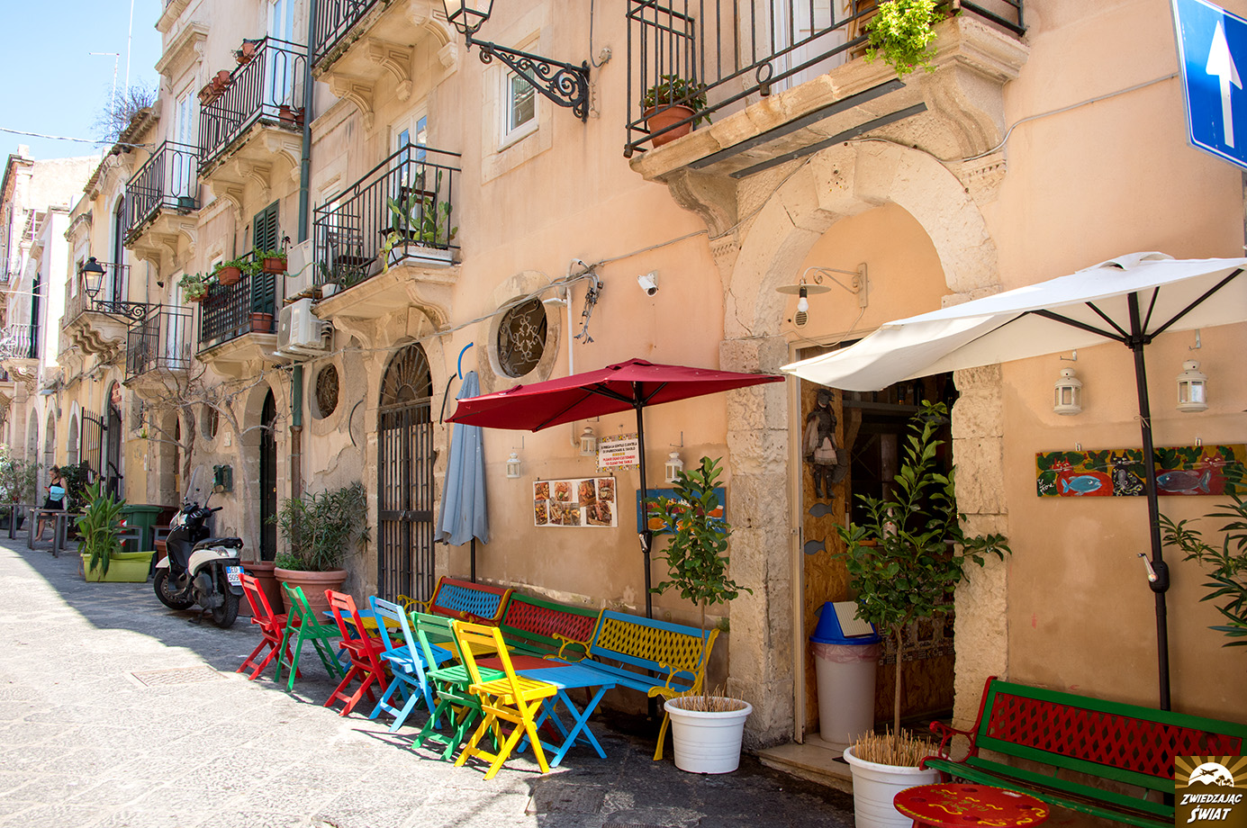 Dla nas Syrakuzy to przede wszystkim wyspa Ortygia (wł. Isola di Ortigia). Wyspę z lądem łączy wąski przesmyk i dwa mosty – Ponte Umbertino oraz Ponte Santa Lucia. Ortygia to najstarsza część Syrakuz z przepięknym Piazza del Duomo, którego ozdobą jest katedra Santa Maria delle Colonne. Katedra powstała na pozostałościach antycznej świątyni Ateny, a w jej wnętrzu nadal można podziwiać piękne doryckie kolumny. Piazza del Duomo przed katedrą to rozległy plac otoczony jasnymi barokowymi fasadami świątyń i pałaców, z kilkoma restauracjami, których stoliki skrywa cień chroniących przed ostrym słońcem parasoli.