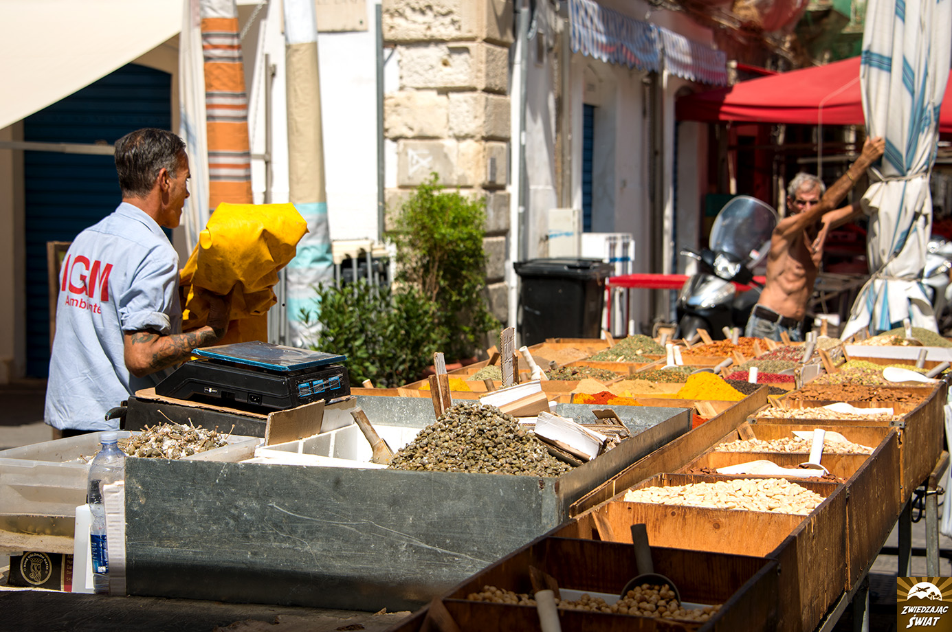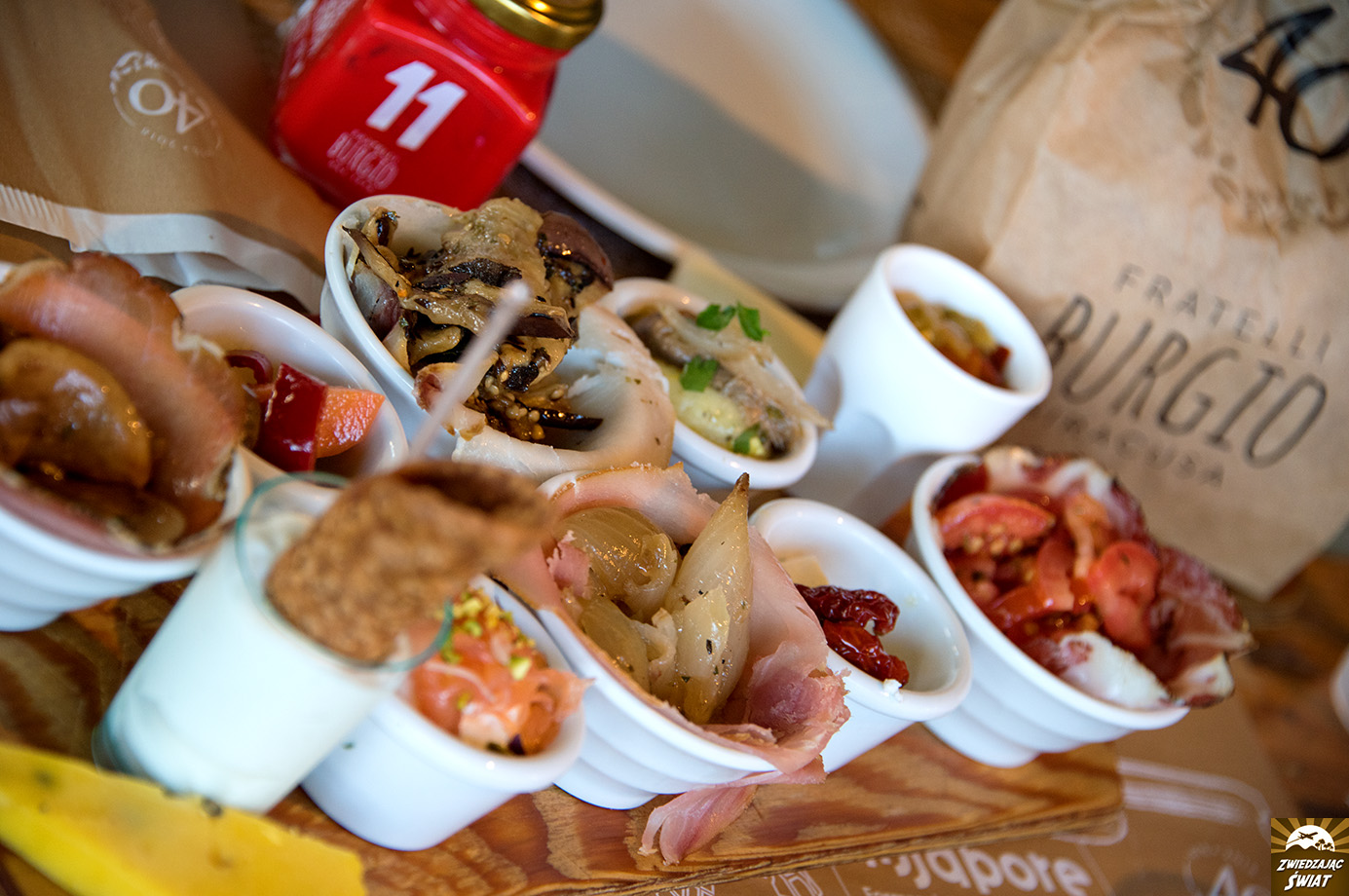 Tak było i tym razem – od stoisk z przyprawami, przez stragany z soczystymi owocami i dorodnymi warzywami, a potem „dział rybny”, dotarliśmy na sam koniec targu, gdzie ulokował się sklep i knajpka Fratelli Burgio.