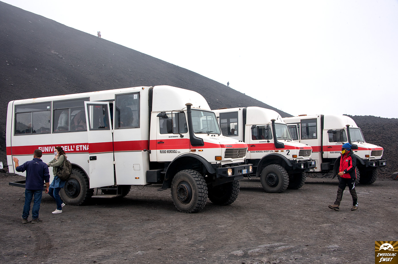 Do Torre di Filosofo docieramy wraz z pierwszymi terenowymi busami, dowożącymi tu zorganizowane wycieczki. W ramach takiej wycieczki można zwiedzić kratery centralne Etny – wejście tylko z przewodnikiem. Opcja samodzielnego pokonania tej trasy jest obecnie niemożliwa, o czym przekonujemy się dość szybko, zawróceni ze szlaku przez przewodników.