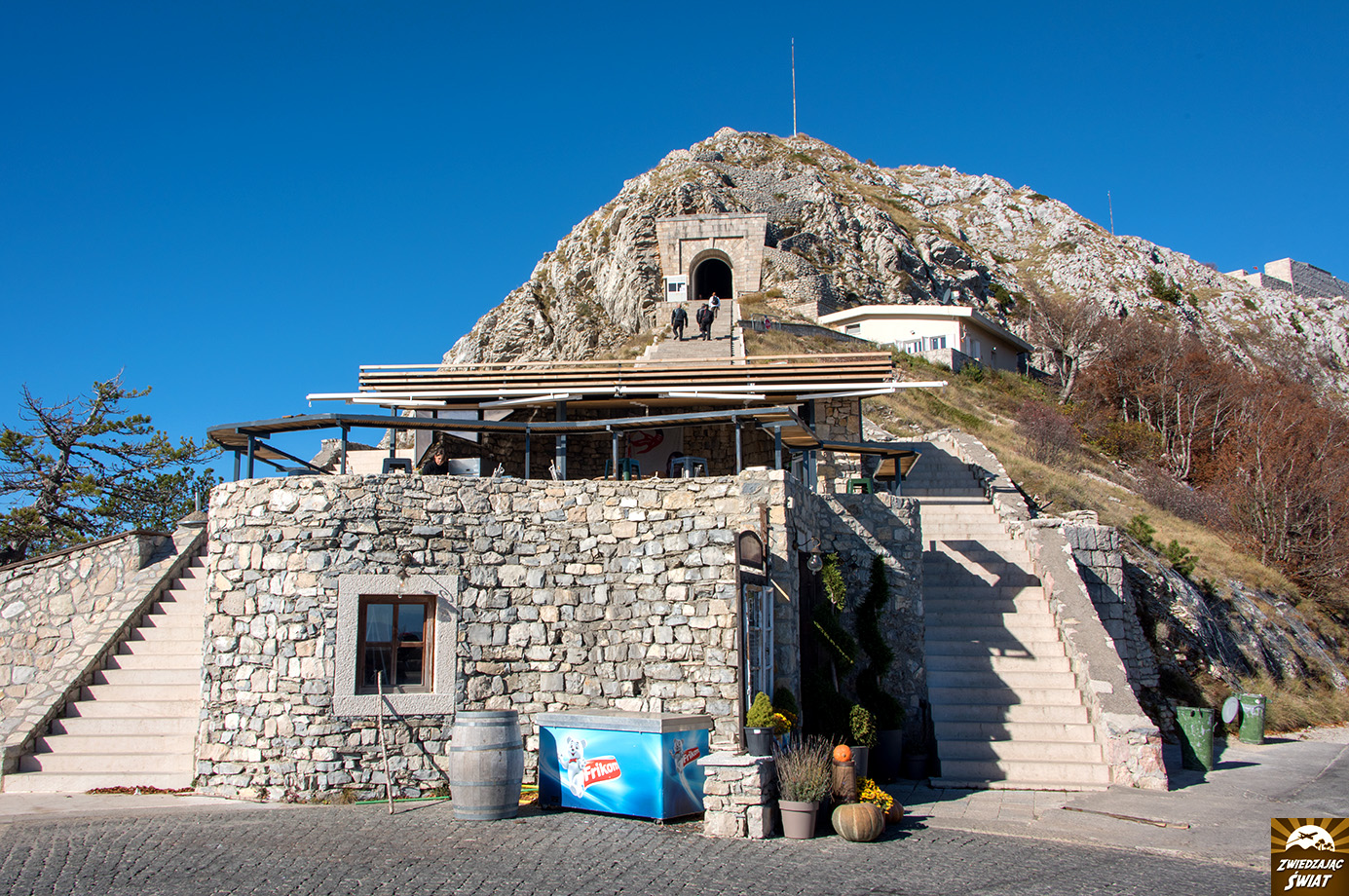 Za budynkiem traficie na kolejną atrakcję. Jest nią platforma widokowa, z której roztacza się rozległa panorama. To właśnie stąd po raz pierwszy zobaczyliśmy Zatokę Kotorską. Widok zdecydowanie wart jest wydanych pieniędzy i wysiłku włożonego w dotarcie na szczyt.