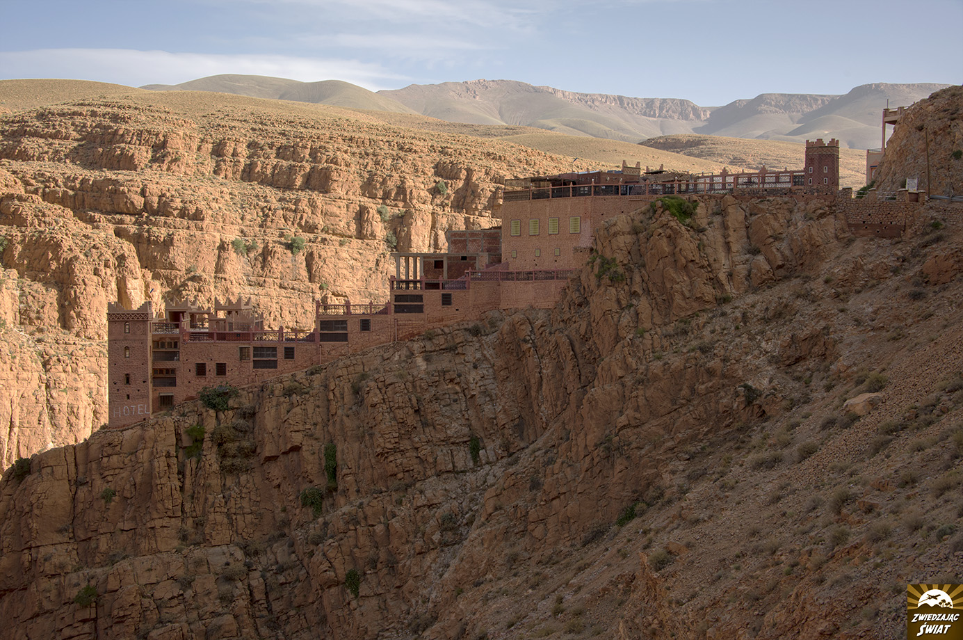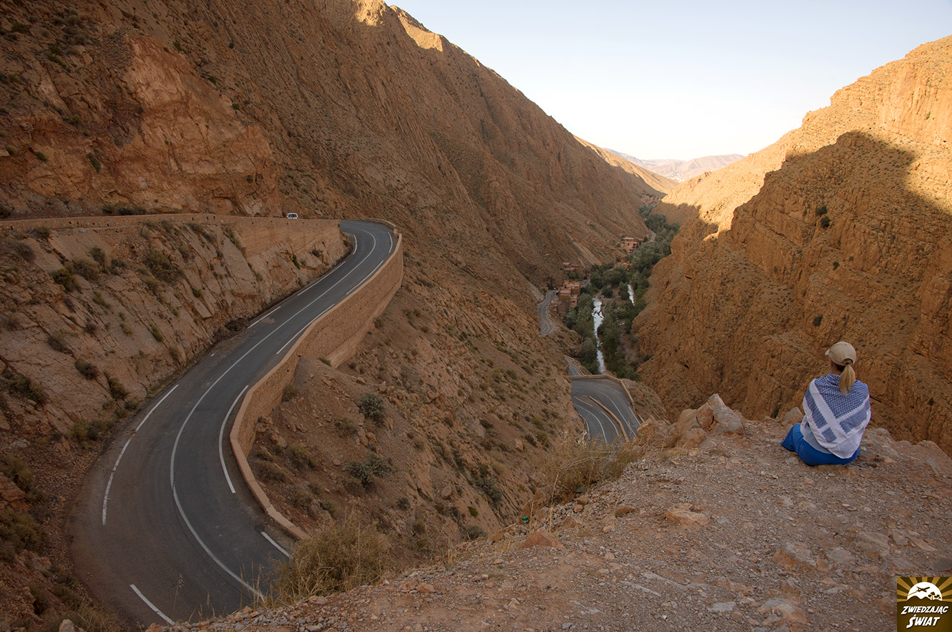 Wadi Dadis czyli Dolina rzeki Dadis rozpościera się na wschód od Warzazatu. W tym żyznym regionie uprawia się daktylowce, figowce, drzewa migdałowca i … róże. Ze względu na te ostatnie Wadi Dadis nazywana jest nawet Doliną Róż. Jest dla niej też inne określenie – Dolina Tysiąca Kazb. W górzystym krajobrazie tej okolicy pojawiają się bowiem niemal co chwilę charakterystyczne gliniane zamki. Ciężko oderwać od nich wzrok, podobnie jak od niezwykle fantazyjnych formacji skalnych, którymi usiana jest Wadi Dadis. Największe wrażenie robi jednak Wąwóz Dadis. Jego opadające pionowo w dół ściany oraz wijącą się w dole rzekę i pełną serpentyn drogę, najlepiej podziwiać z punktu widokowego obok zawieszonej nad urwiskiem kawiarni.